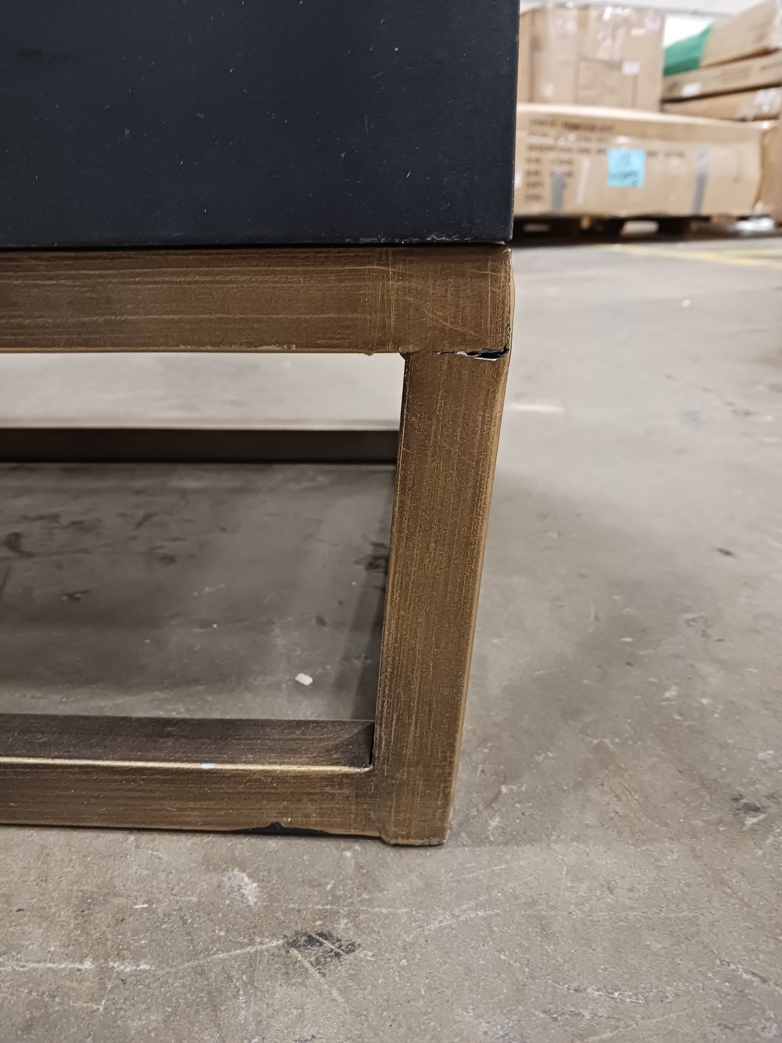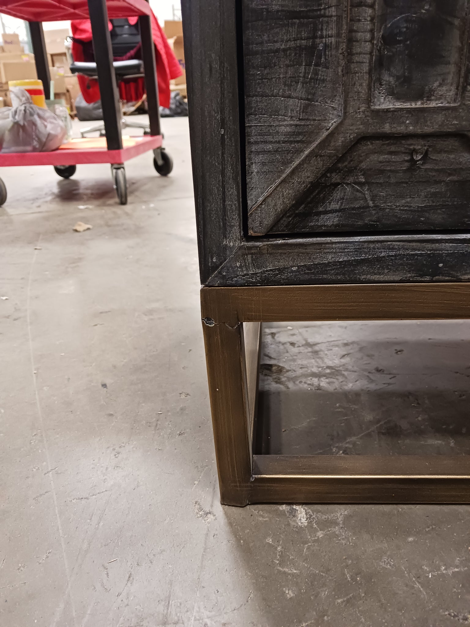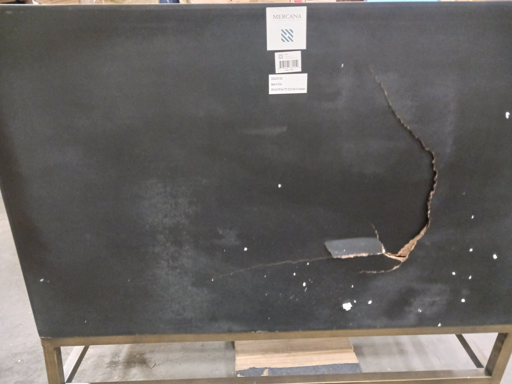 Note: AS IS: The metal base has slight cracks on it throughout but it is stable. The back of the accent cabinet has a large hole in it. See photos provided.