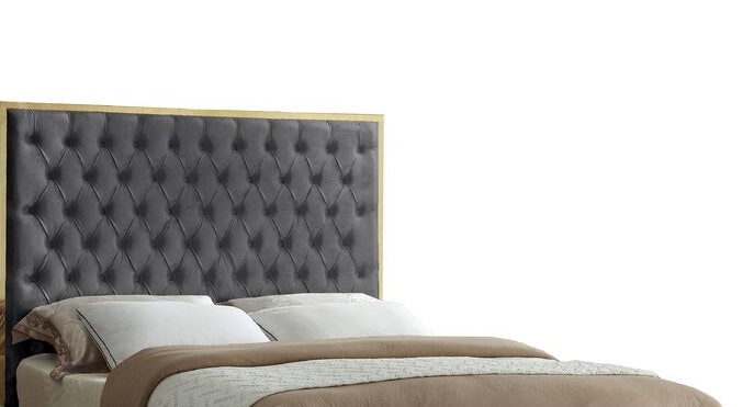 Gray Spadaro KING Velvet, Solid Wood and Upholstered Platform Bed Headboard ONLY #2223HW