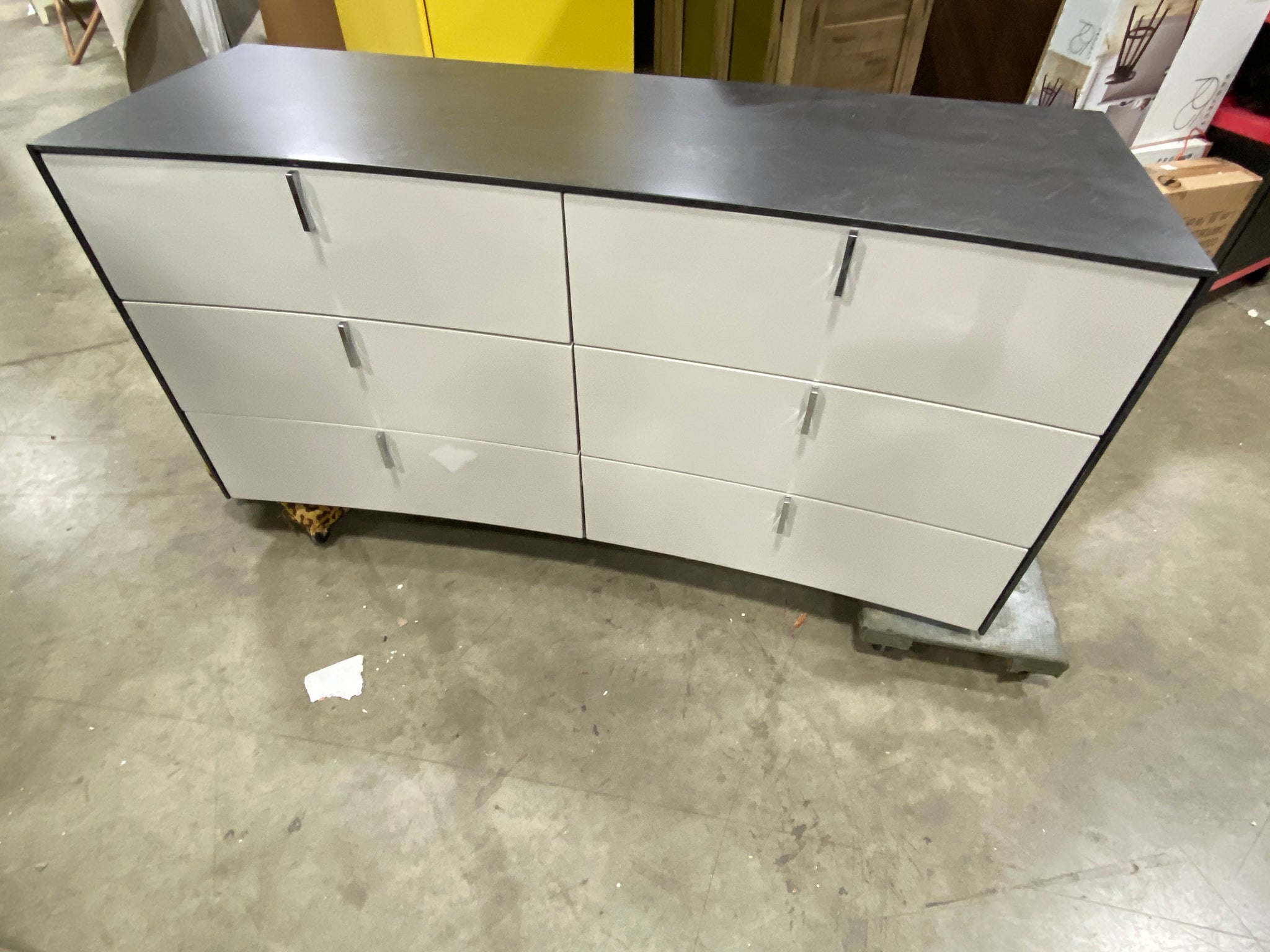 6 drawer double dresser in High gloss white /dark gray. Item appears in great condition.