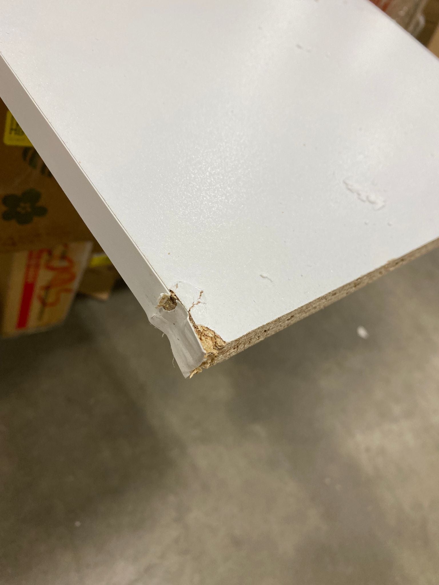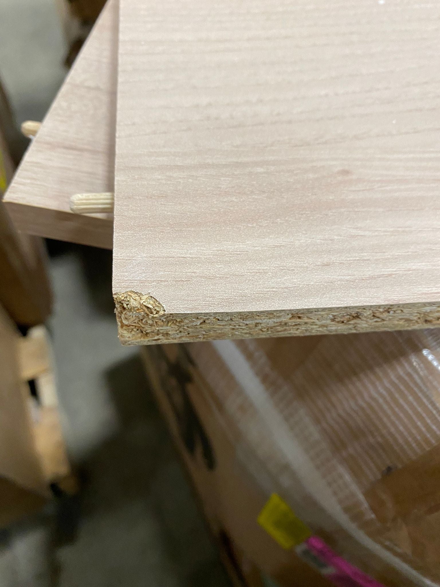 Open box, The color is jackson hickory, AS IS Condition: Loose hardware in box; maybe missing some screws. 1 board dinged on 2 corners due to shipment. Item in otherwise good condition.