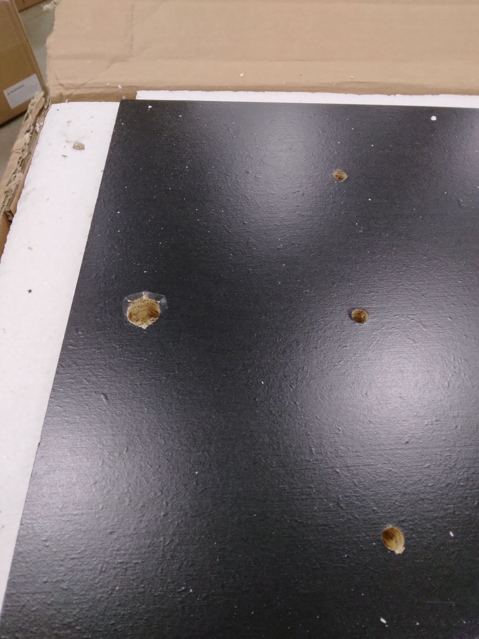 Open Box, The color is black, AS IS: Previously opened. Slight chips on the wood pieces. See for photos.