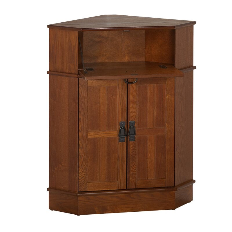Open box item- In box wooden corner accent cabinet in Oak. Assembly required.