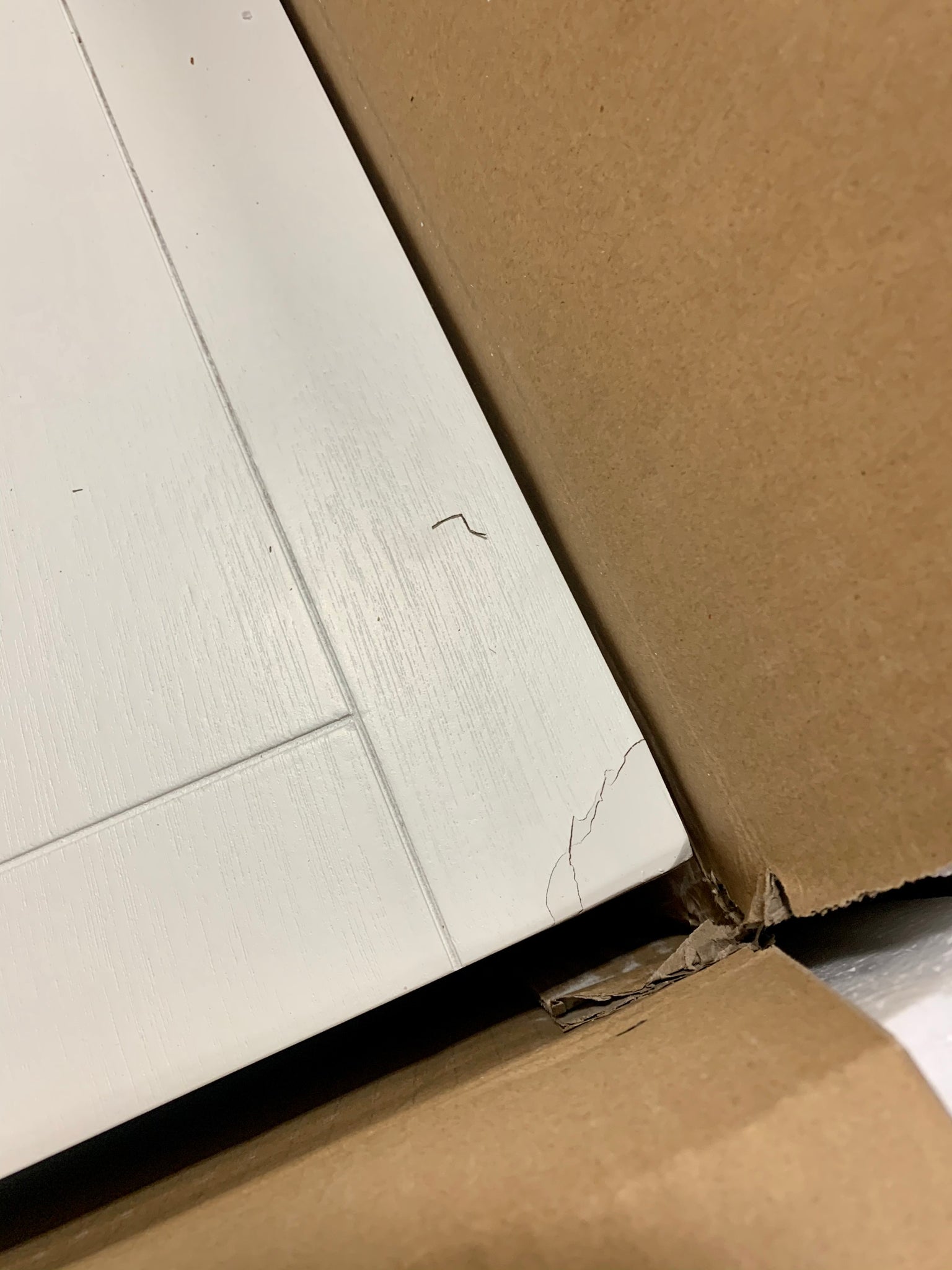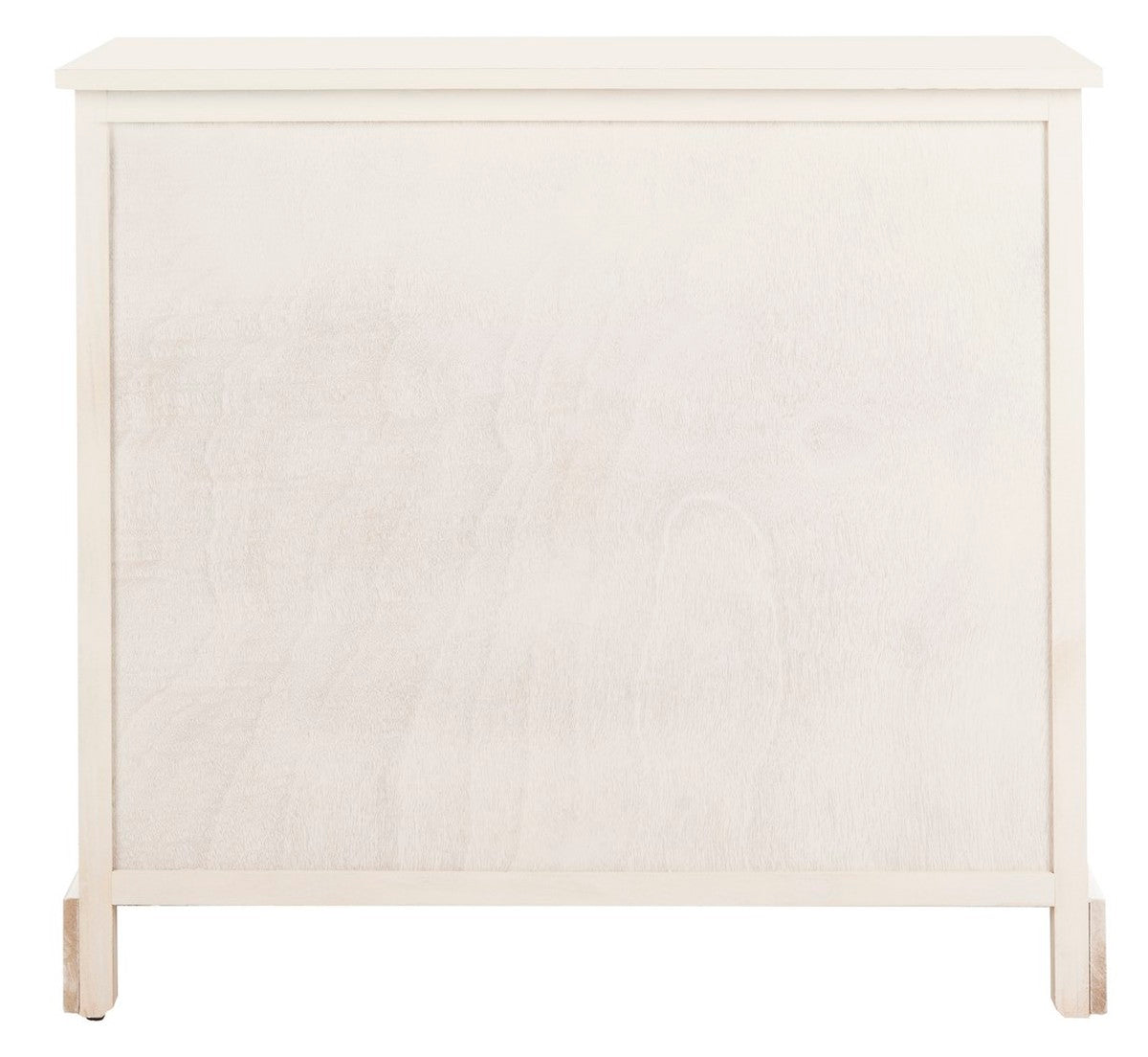 Open box item. This box has been previously opened. Chest crafted with pine wood in a cream finish features four removable woven rattan baskets with cutout handles and two top drawers for additional storage. No assembly required. Corner of chest is damaged. See last two photos for reference, otherwise item is in excellent condition.