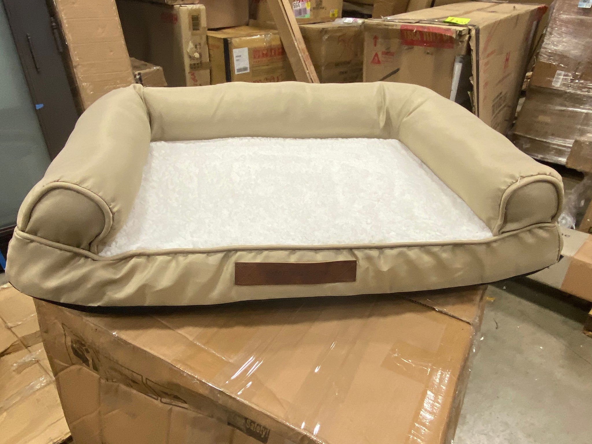 Open box, The color is taupe, Set of 2 beds. Please Note: Small tear on underside of 1 bed.