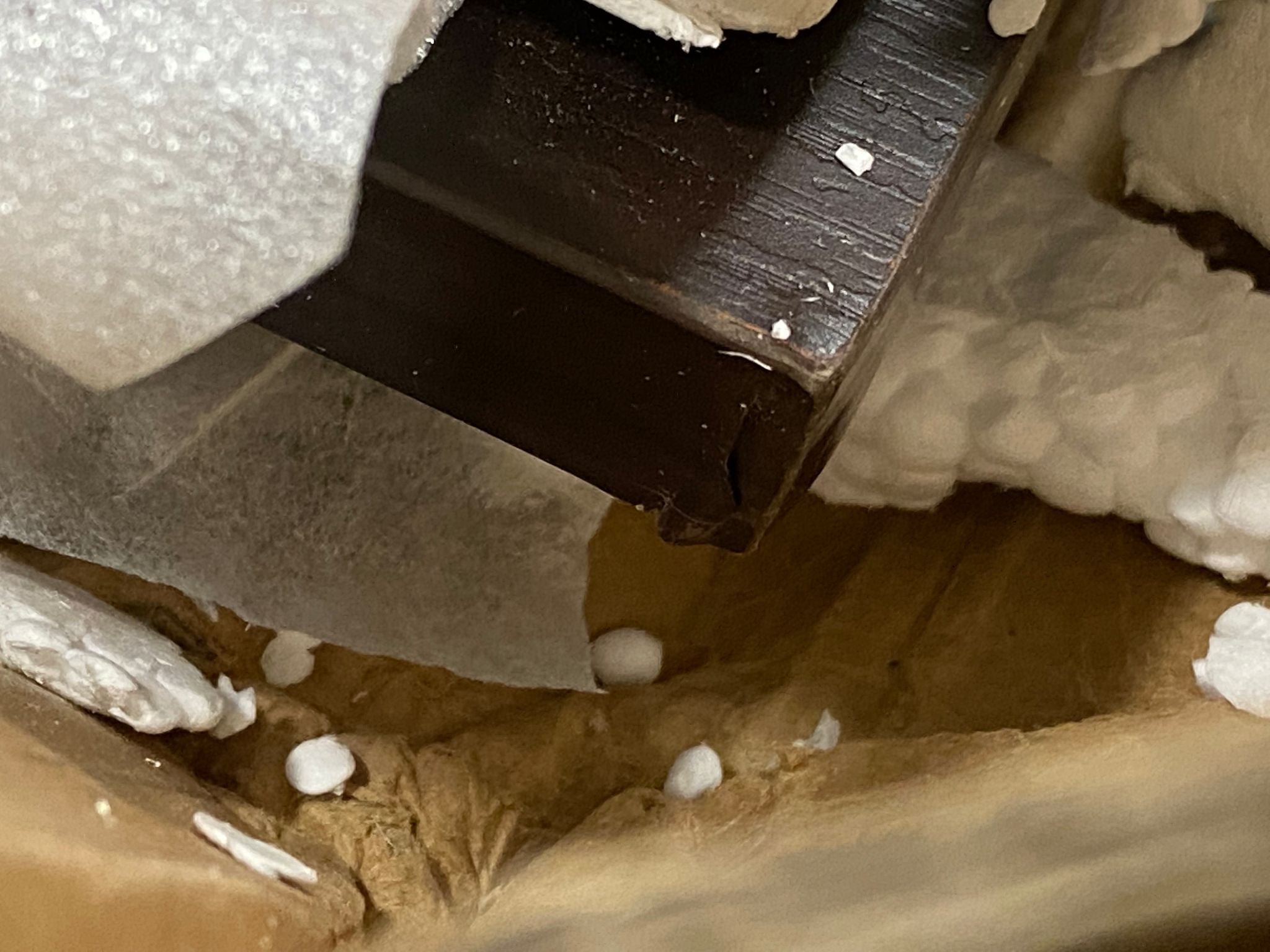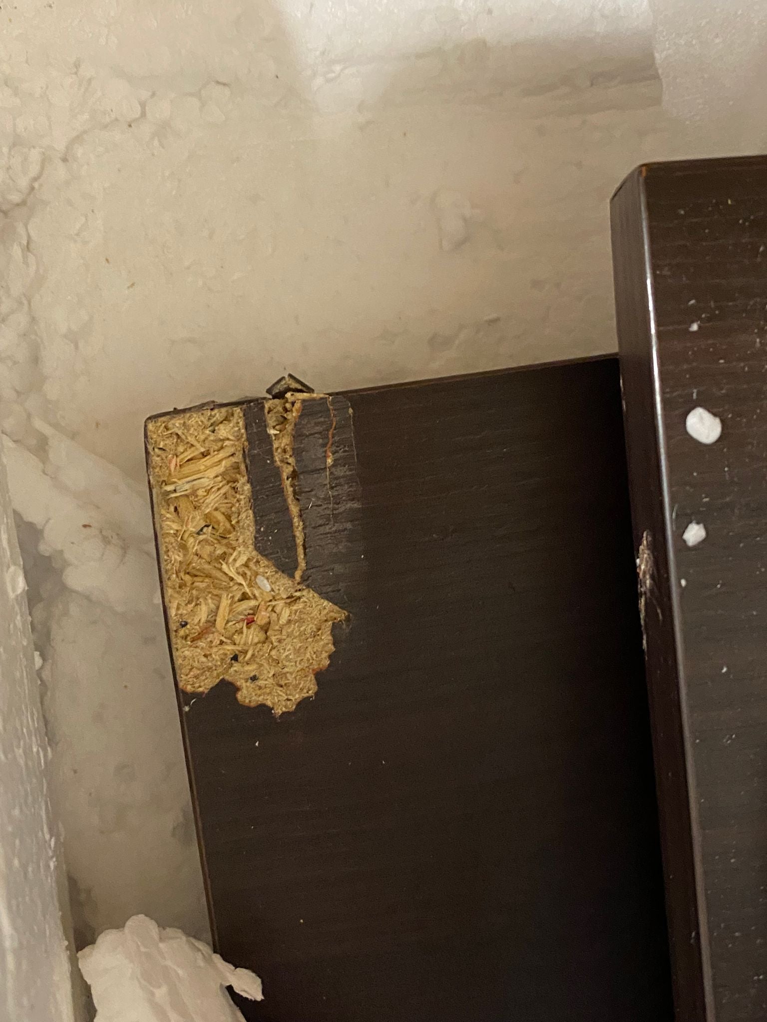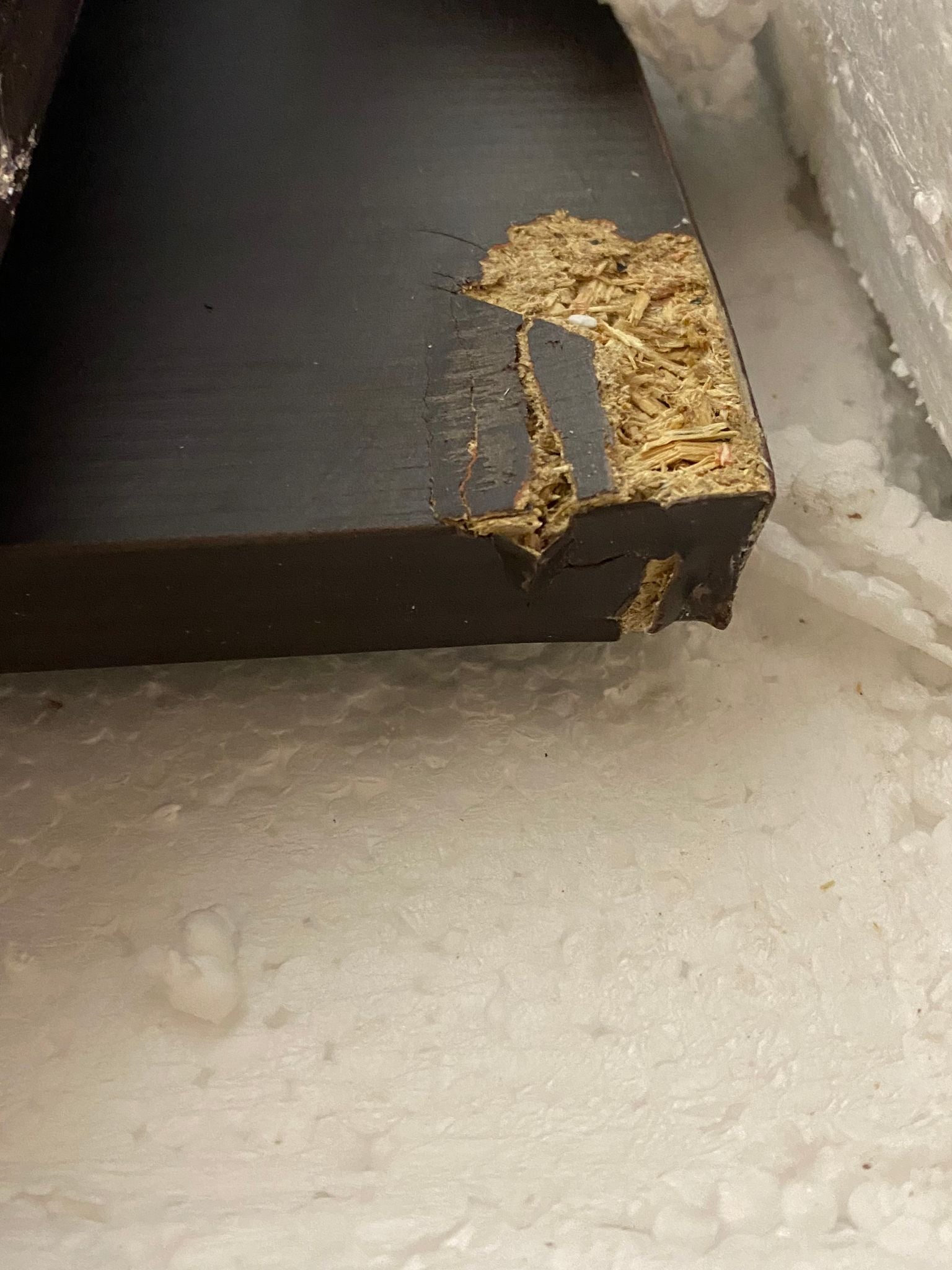 Open Box, The color is walnut/black, AS IS condition: Table top has damage on back corner of top. Slight ding on front corner of other table top piece. Color is more of an espresso brown color than black. See photos. May be missing some screws due to previous opening.