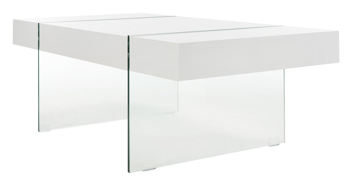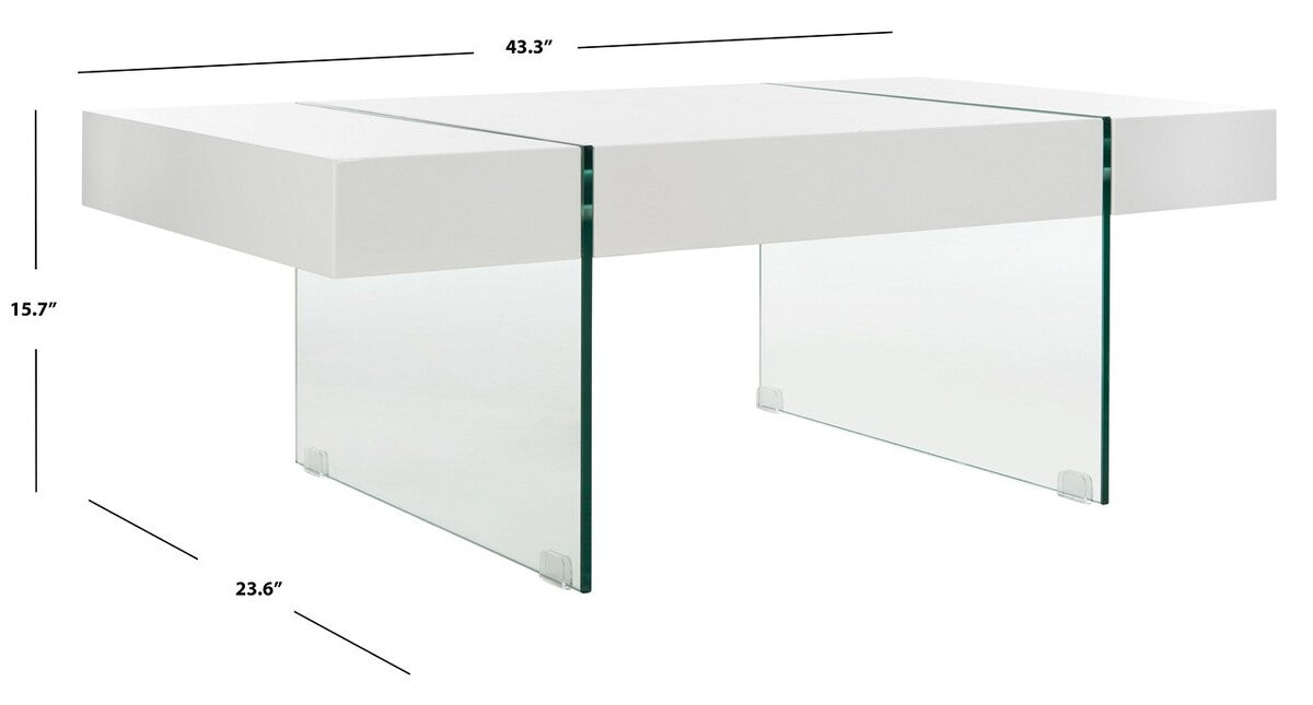 Open box item. This box has been previously opened. Coffee table crafted with translucent glass and solid wood in a white finish. Minor assembly is required.