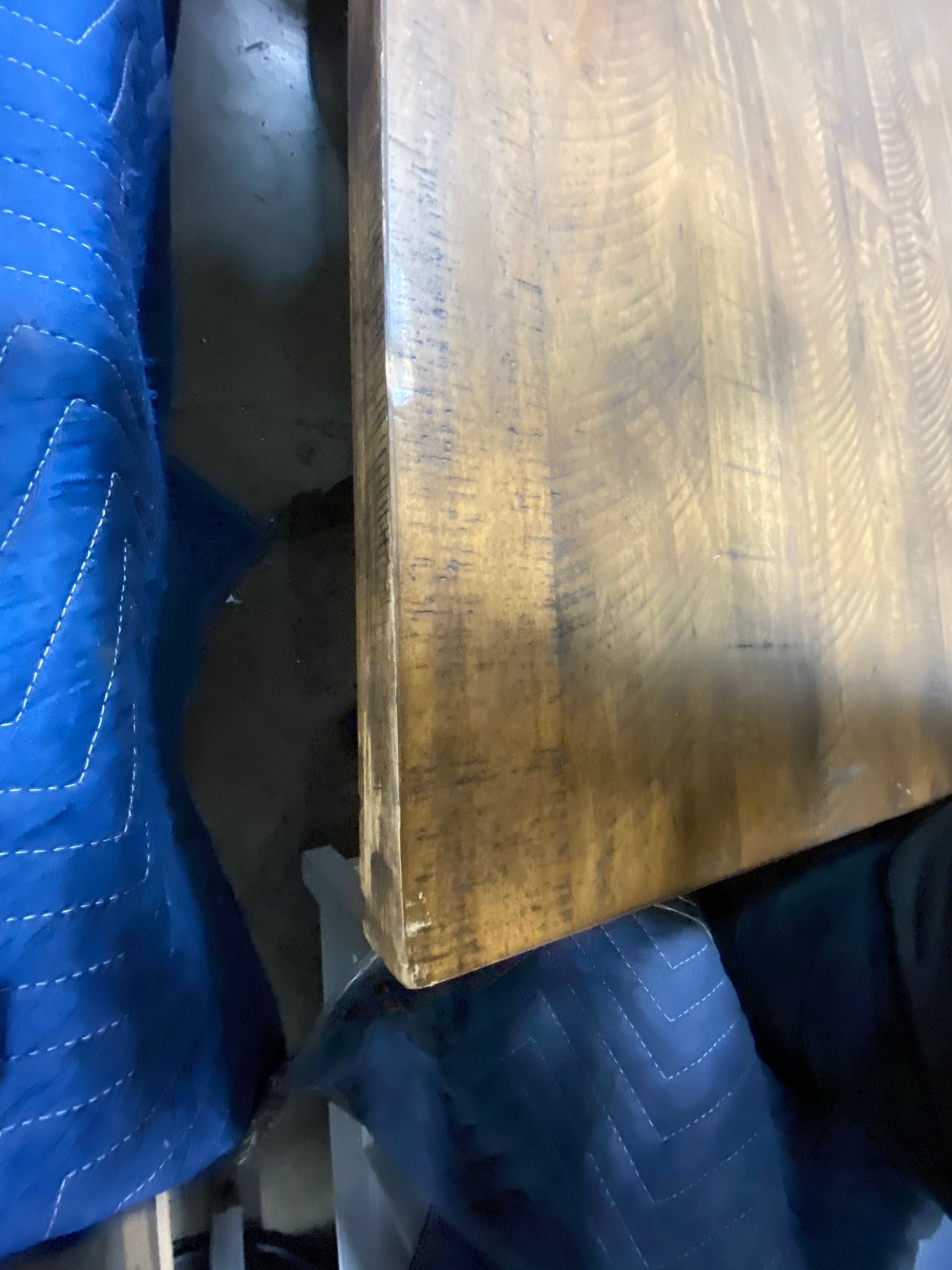 Out of the box, Please Note: Item top NOT original table top. Item is counter height. Item is in good condition.