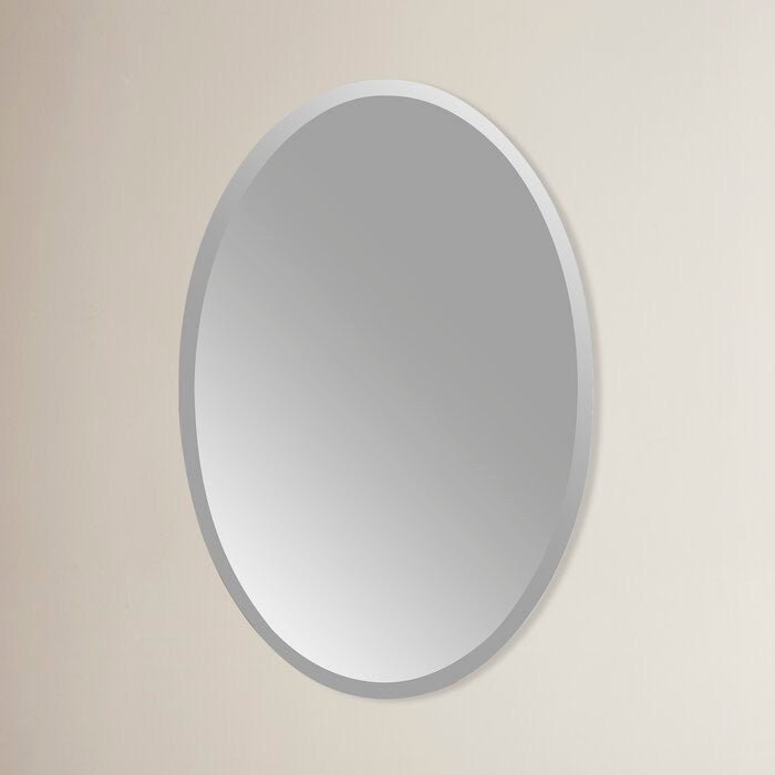 Unframed and understated, this sleek bathroom mirror is perfect for opening up your powder room or another space in your home. This beveled glass piece showcases an oval silhouette, and it is available in several sizes to ensure it fits into the room you had in mind. Three standard hooks are bonded at the back, so you can mount it vertically or horizontally as soon as it reaches your door.