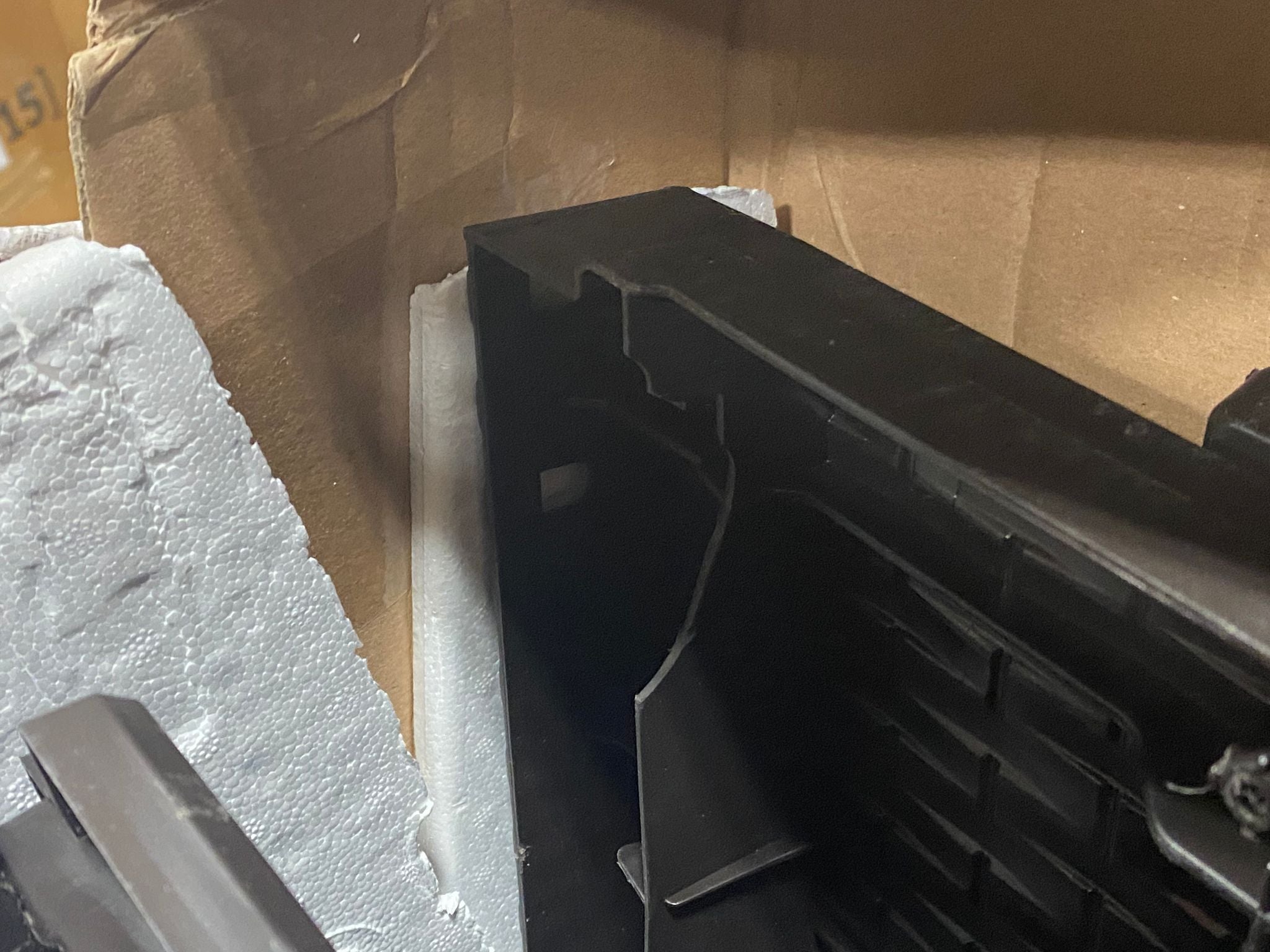 Open box, The color is brown, Please Note: Item has small area broken off inside of 1 of the panels. Item in otherwise good condition.
