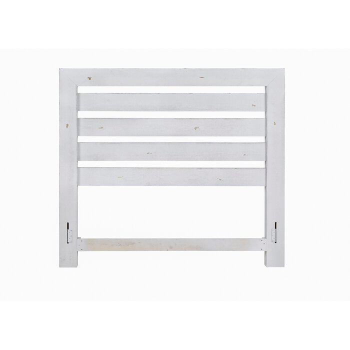 Rustic distressed white wooden slat headboard. Item is in great condition, see pictures for details, minor chipping on back.