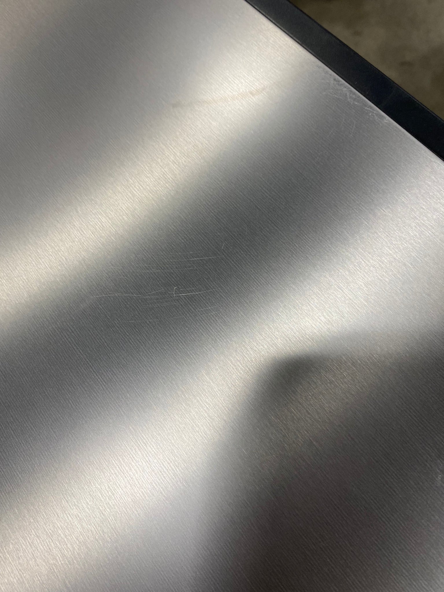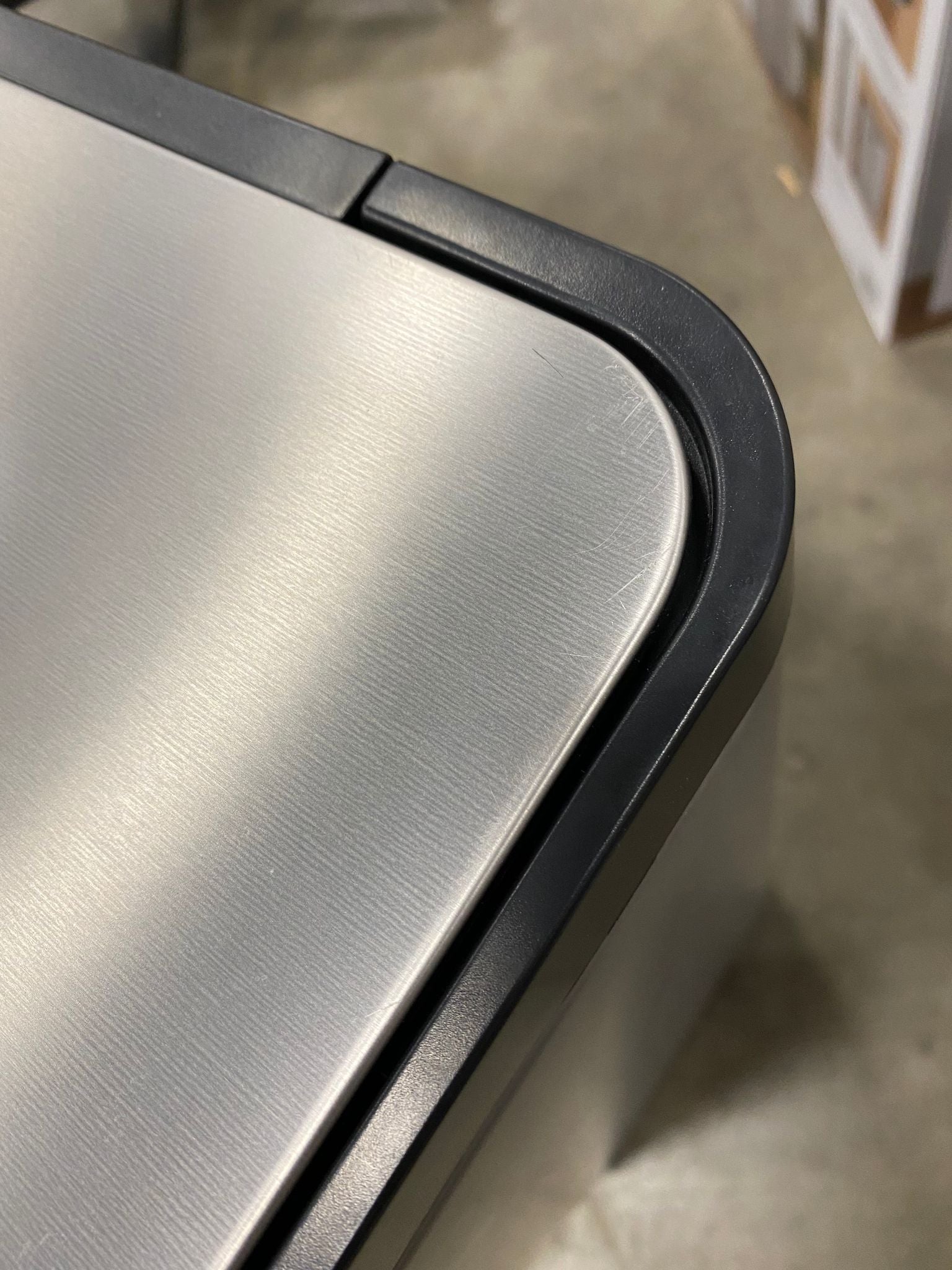 Open box, The color is stainless steel, Please Note: Item has some scratches on underside of lid. Scuffing/slight scratches on lid and black plastic rim due to shipment. See photos. Item in otherwise good condition.