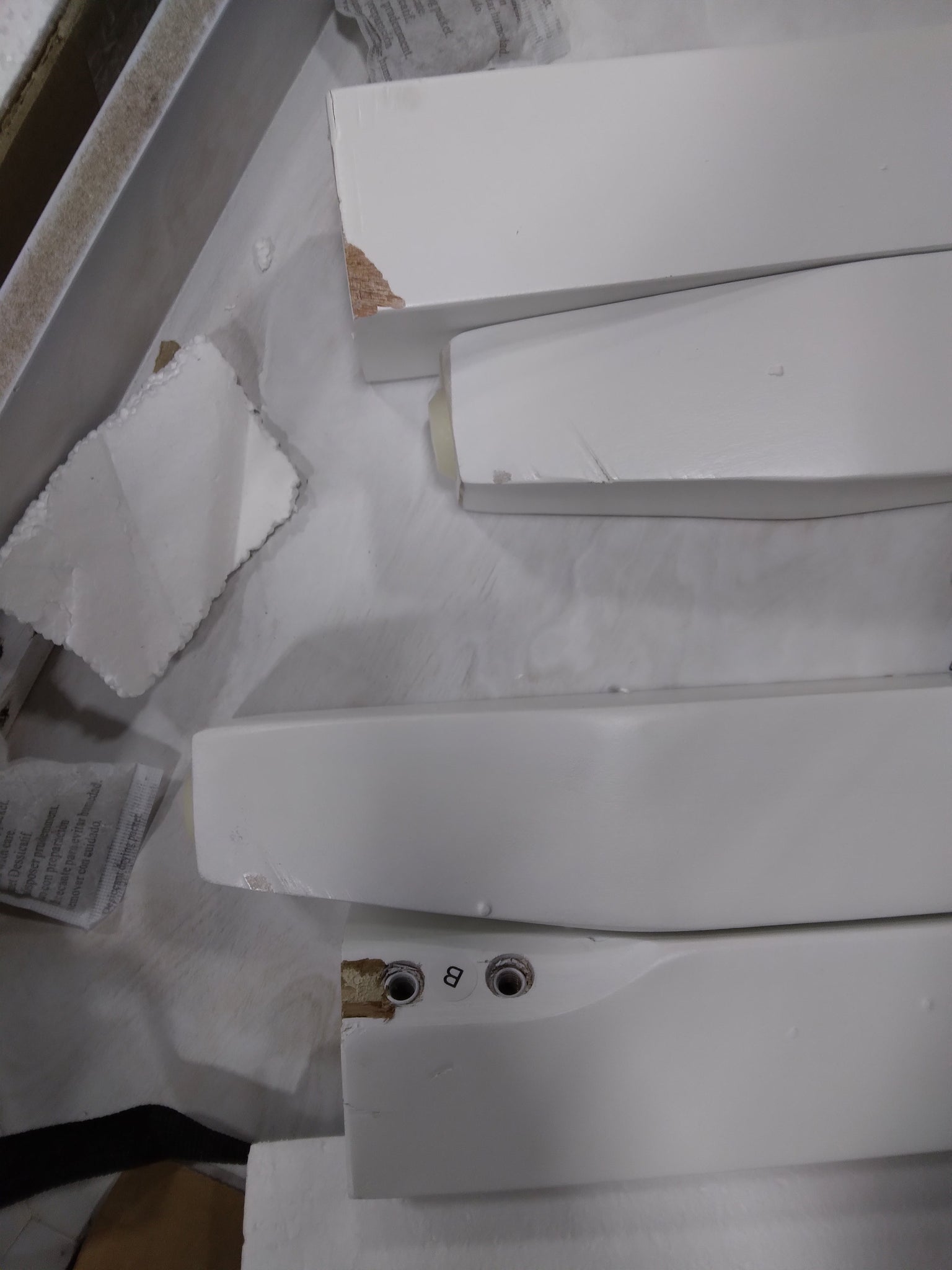 Open Box, The color is white, Size: 48", AS IS: This table has been previously opened with no hardware or instructions. There are chips on the legs. One of them is on the screw hole opening but can still be assembled. See photos
