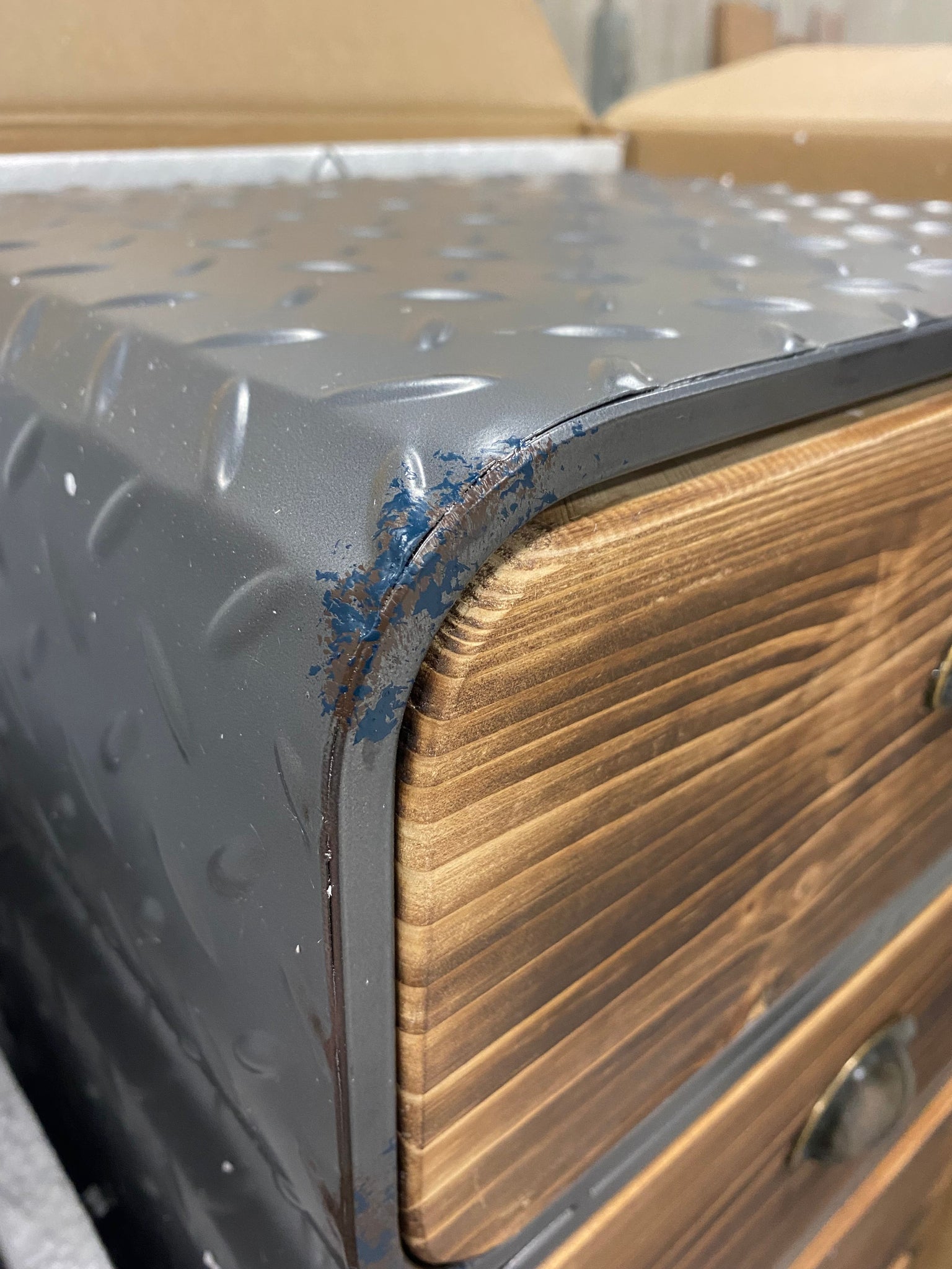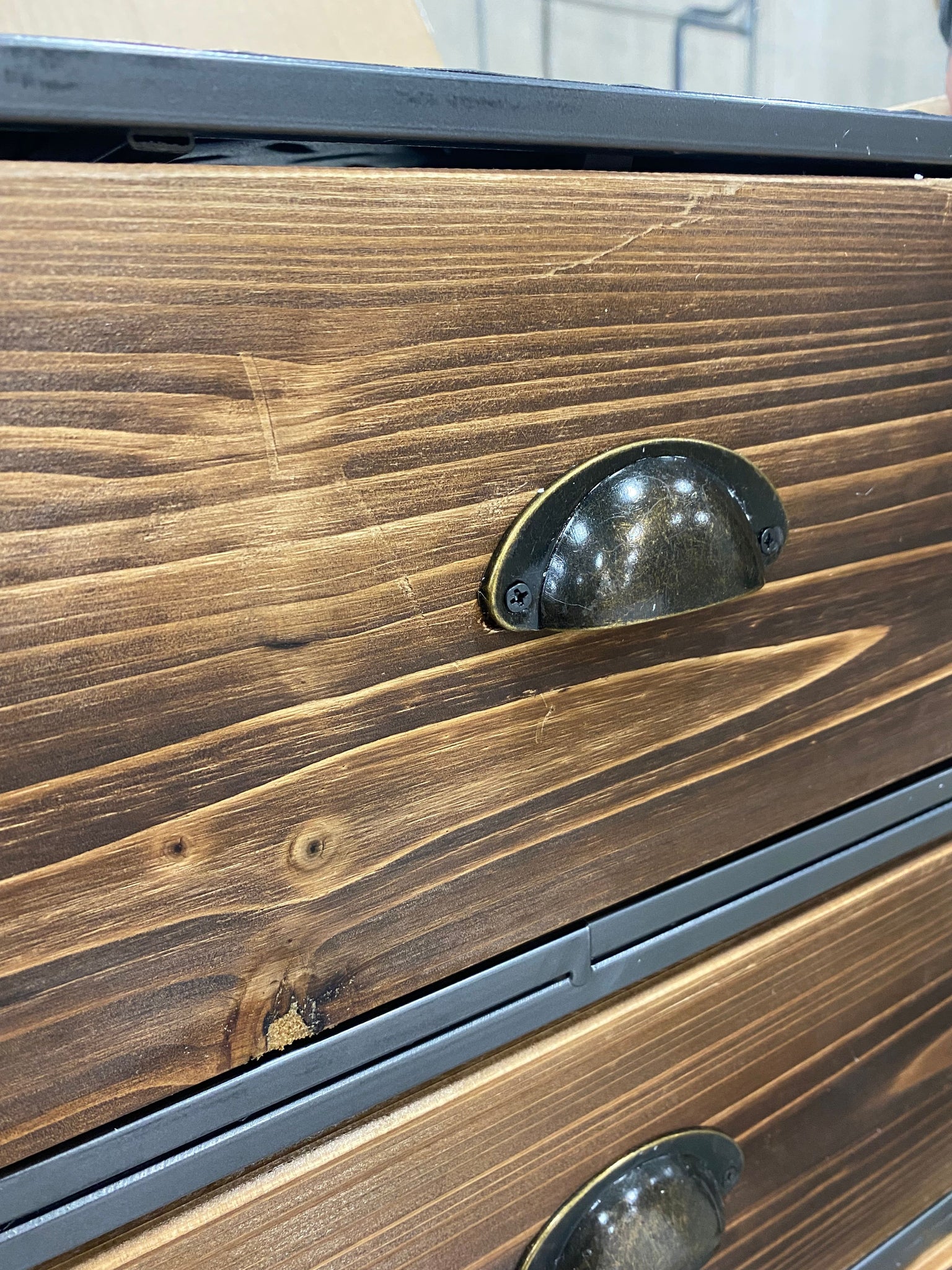 Note: Item looks intentionally distressed on top corners of chest. Also has minor scratches on top drawer.