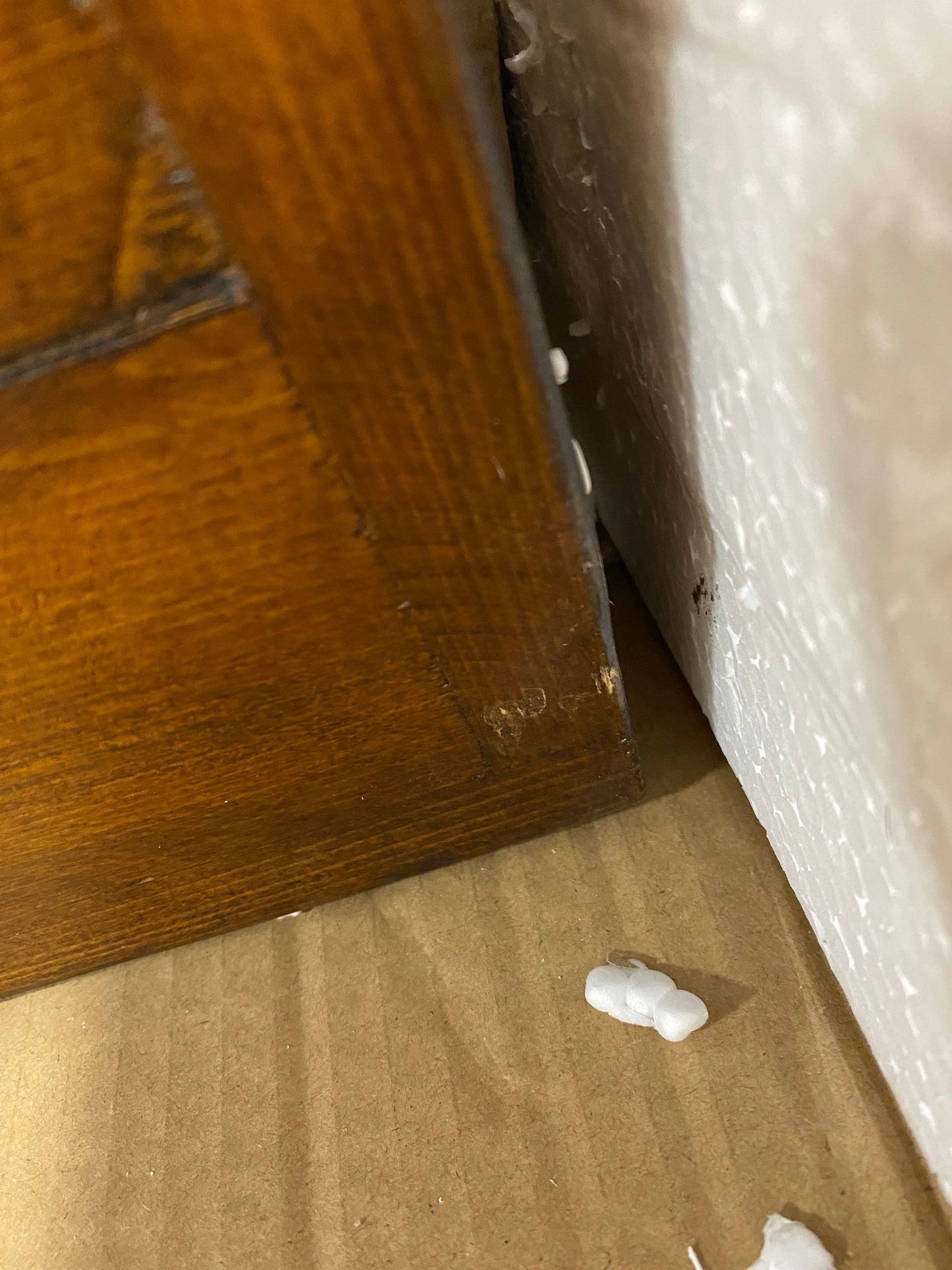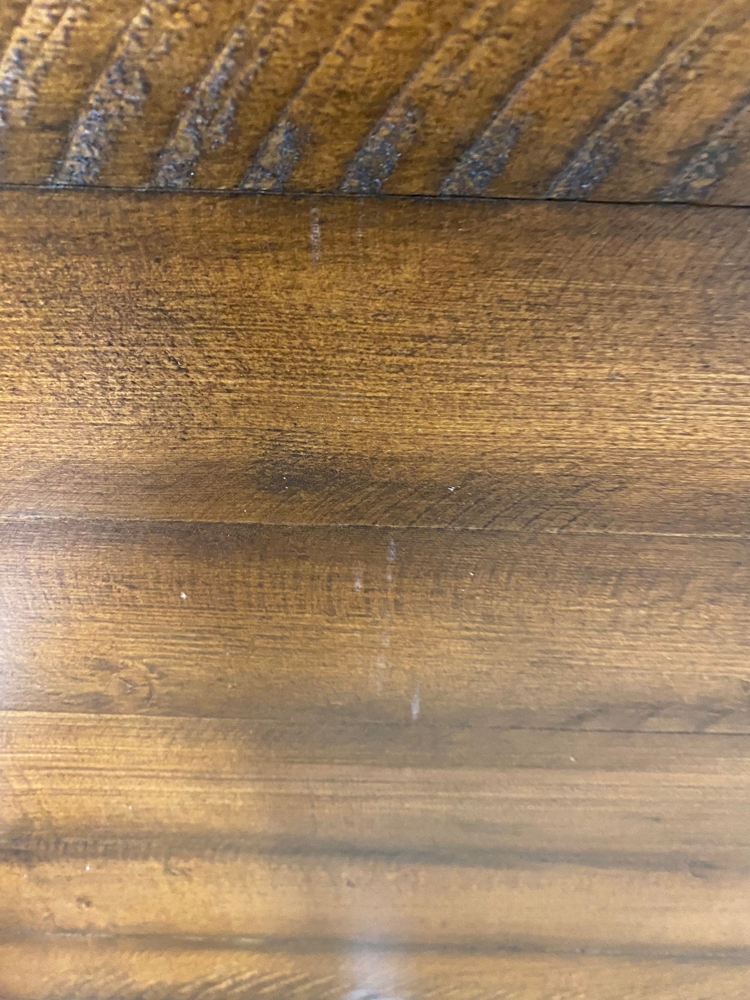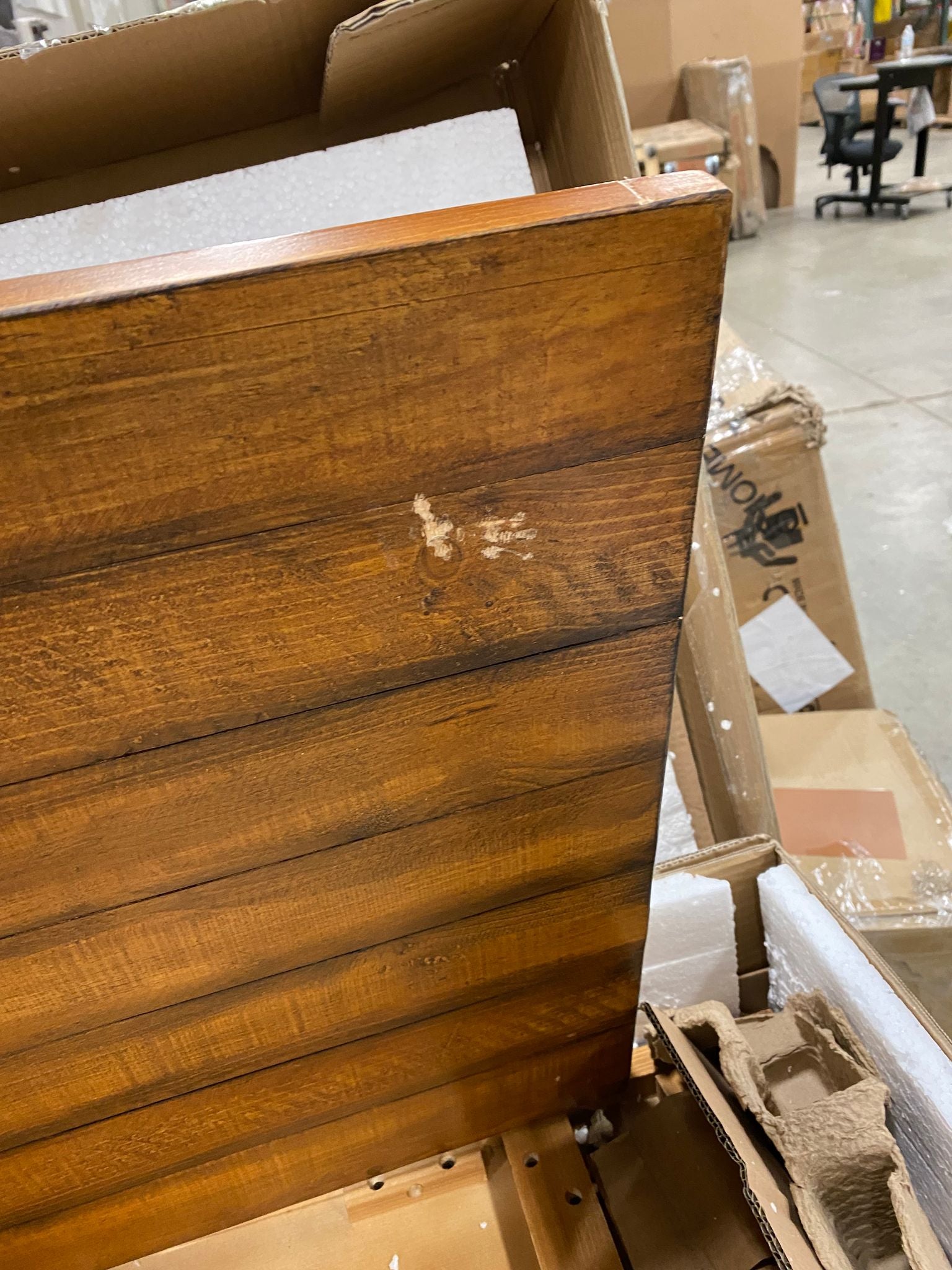 Open box, The color is natural pine brown, AS IS condition: Scratches on table top and storage shelf. See photos. May be missing some screws due to previous opening. Item in otherwise good condition.