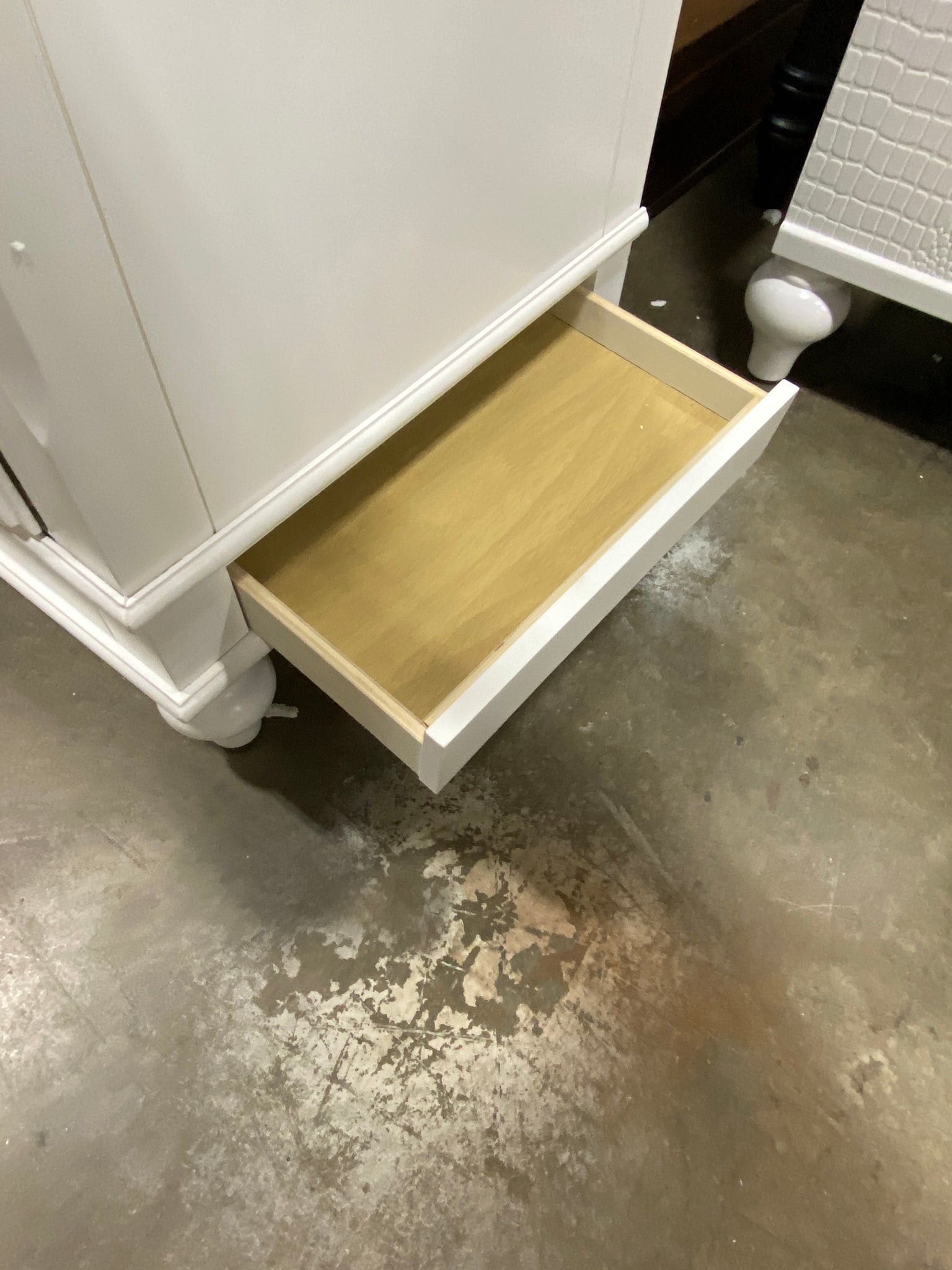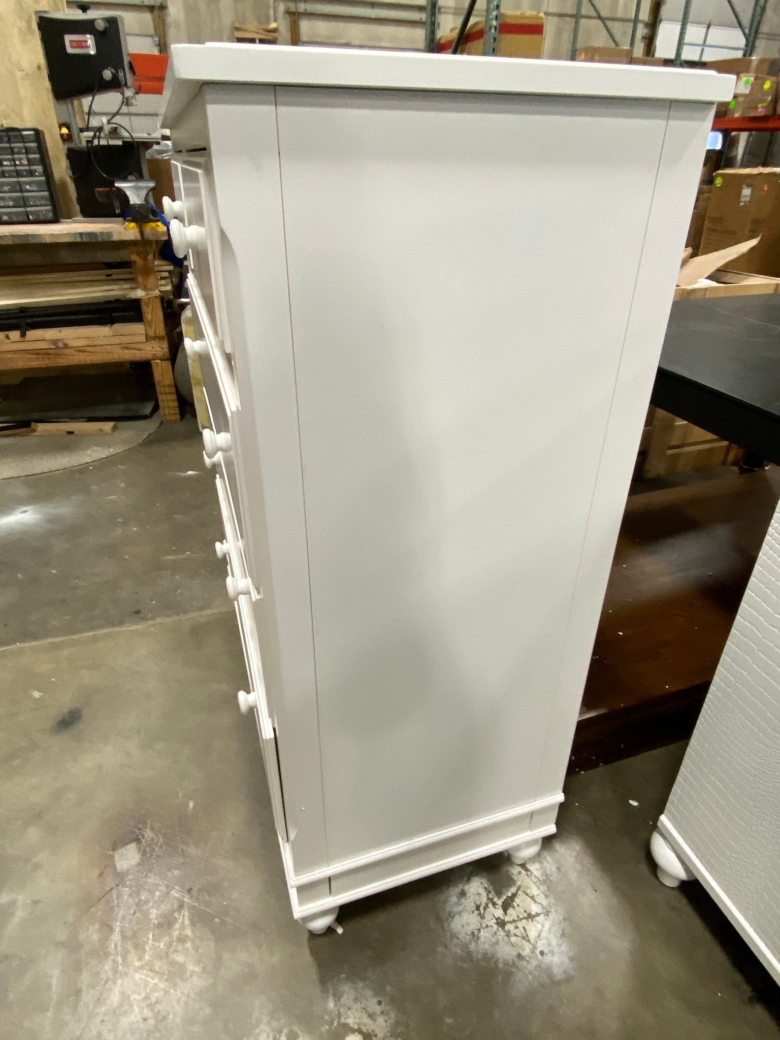 5 drawer chest in White. Secret hidden drawer on bottom right side. Item in great condition. See photos.