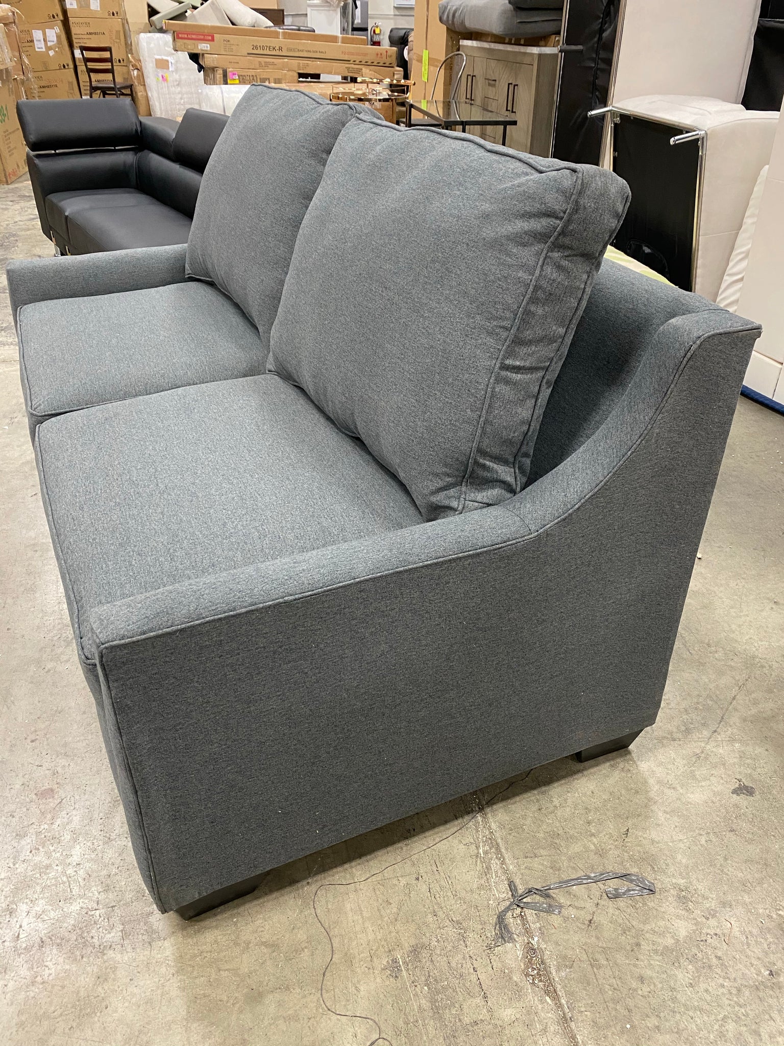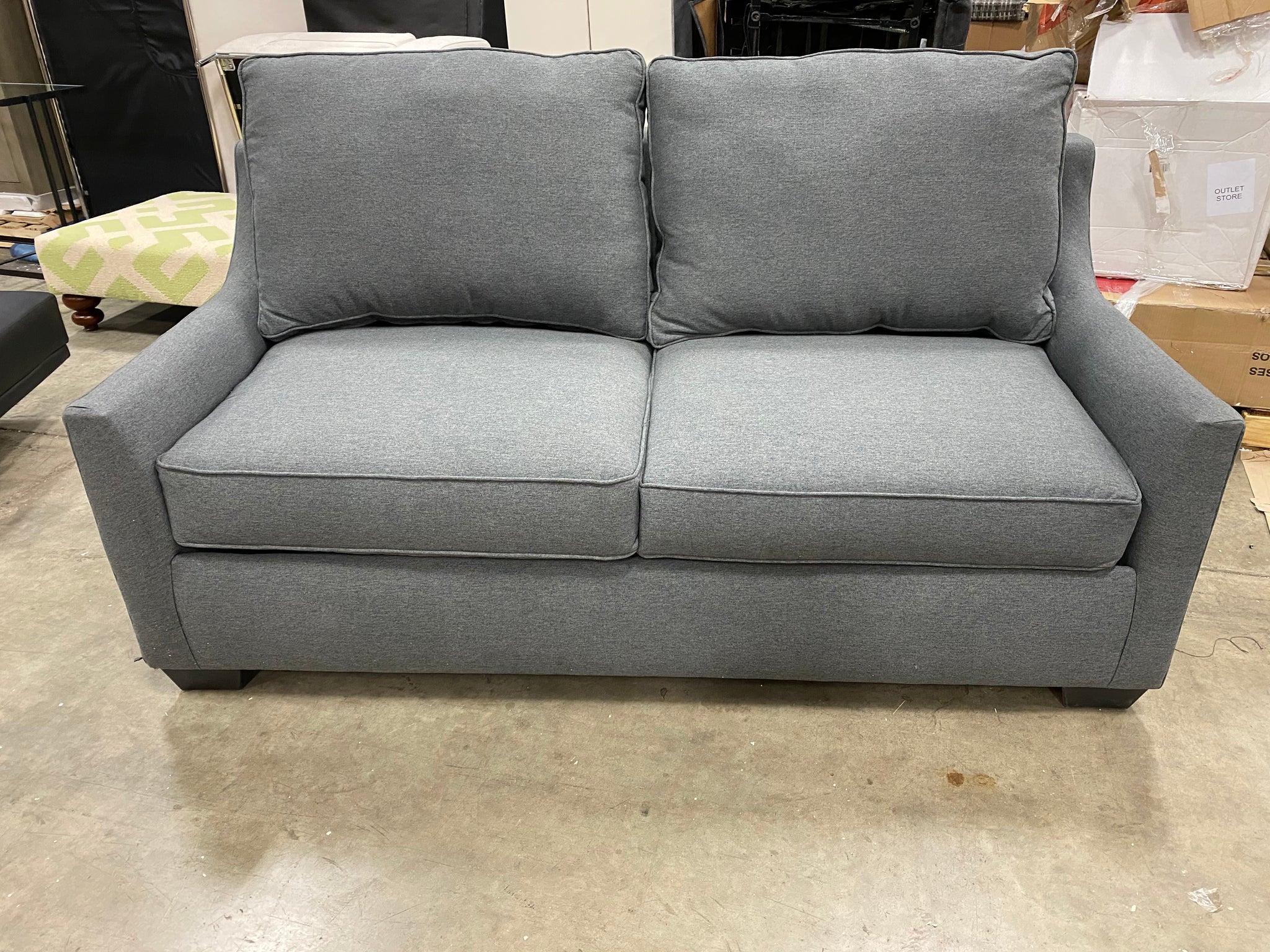 Sofa bed in Charcoal. Sleeper features 5" full size pull out mattress.