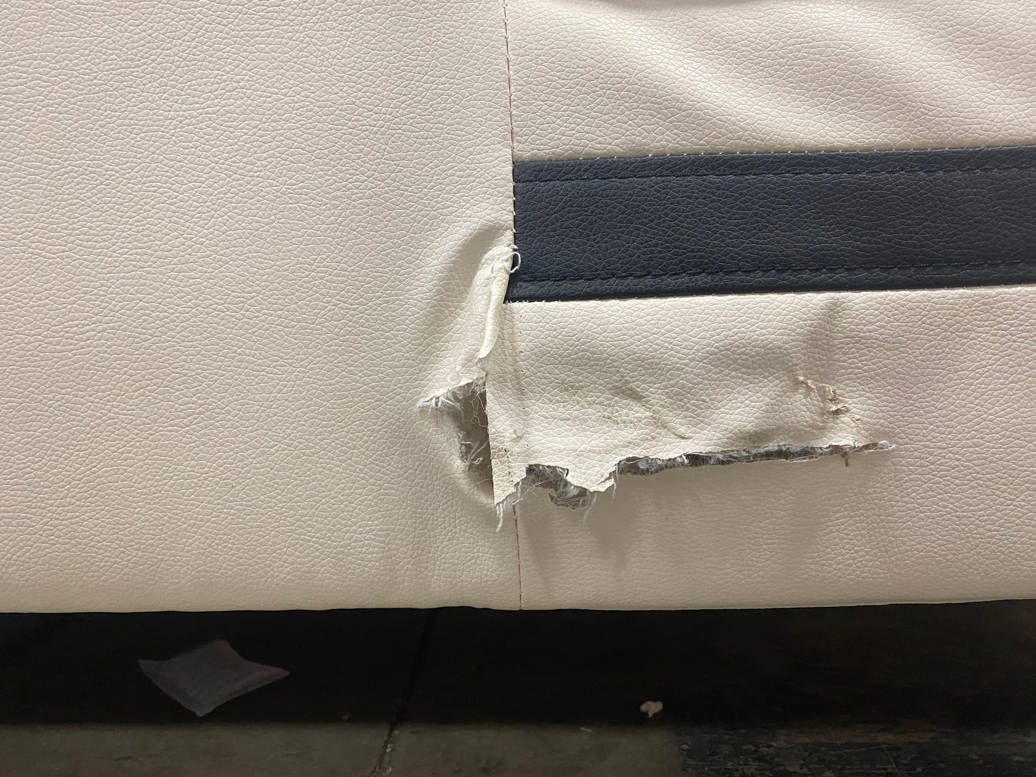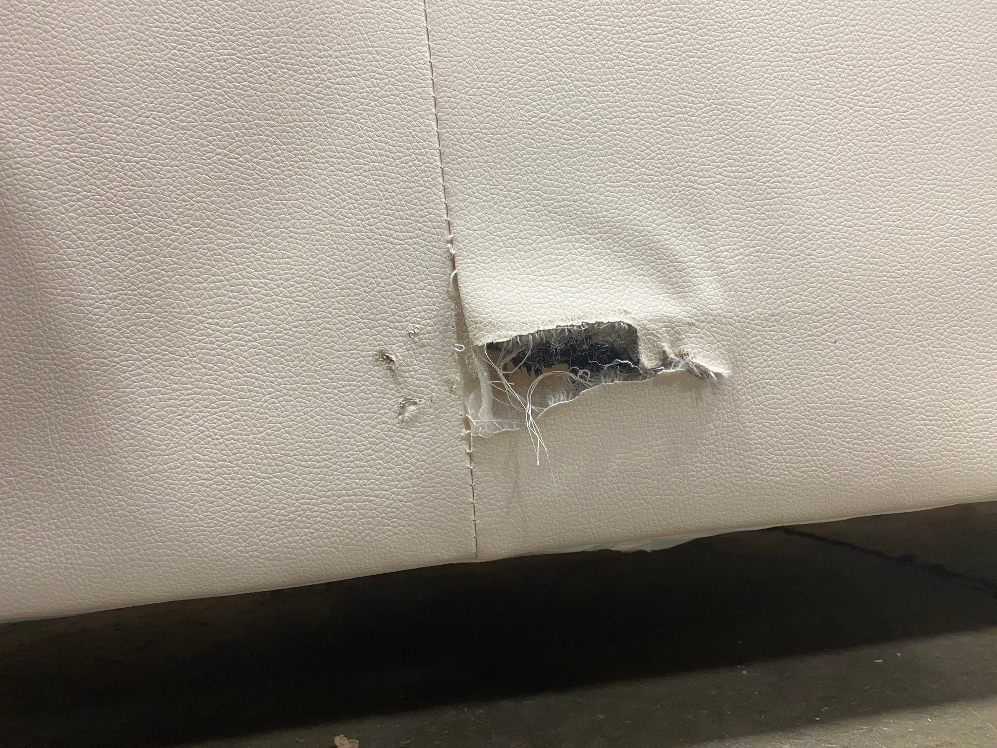 AS IS ITEM: Chaise has two rips on the back. Other than that its in good condition. Non-returnable.