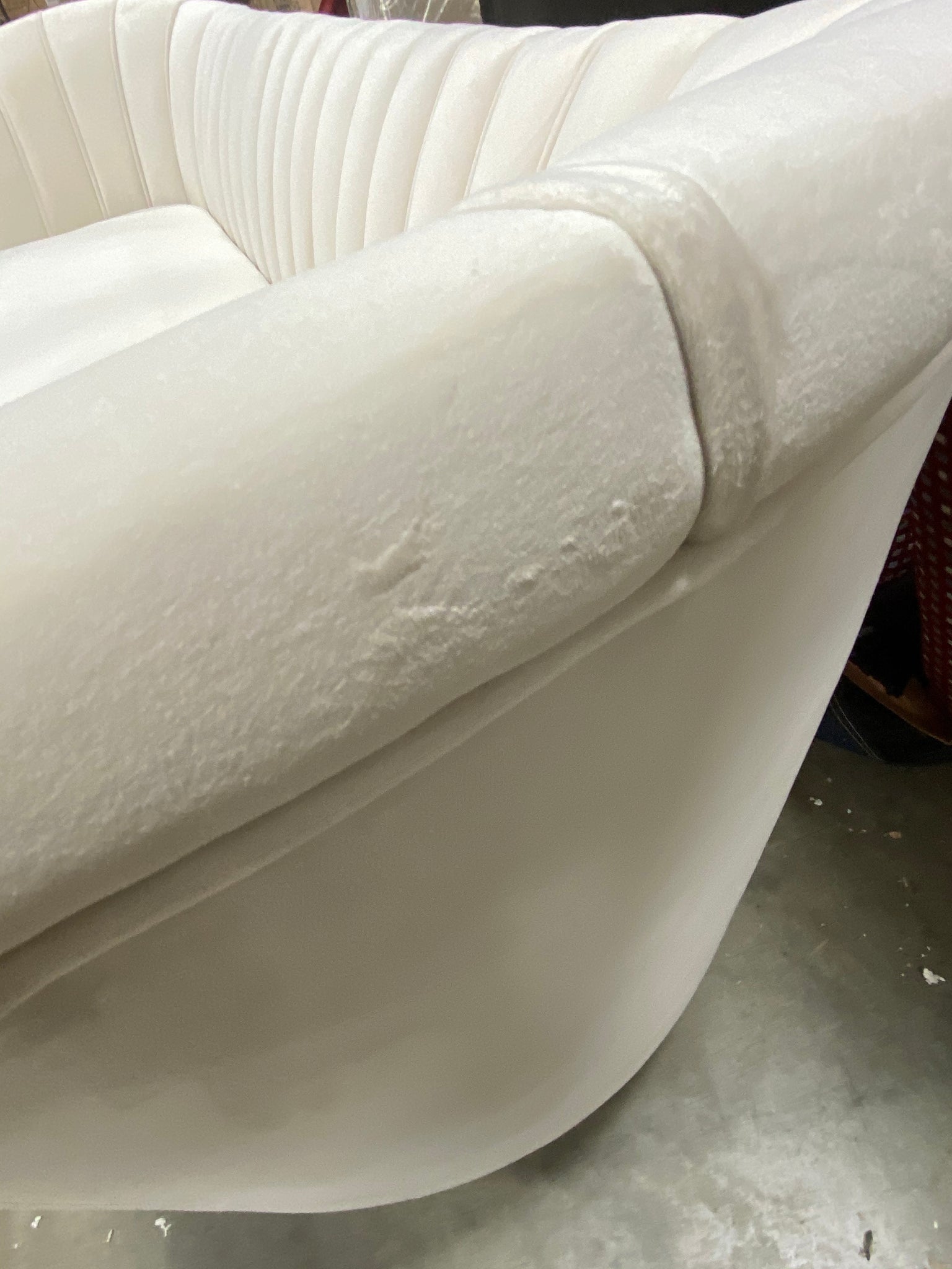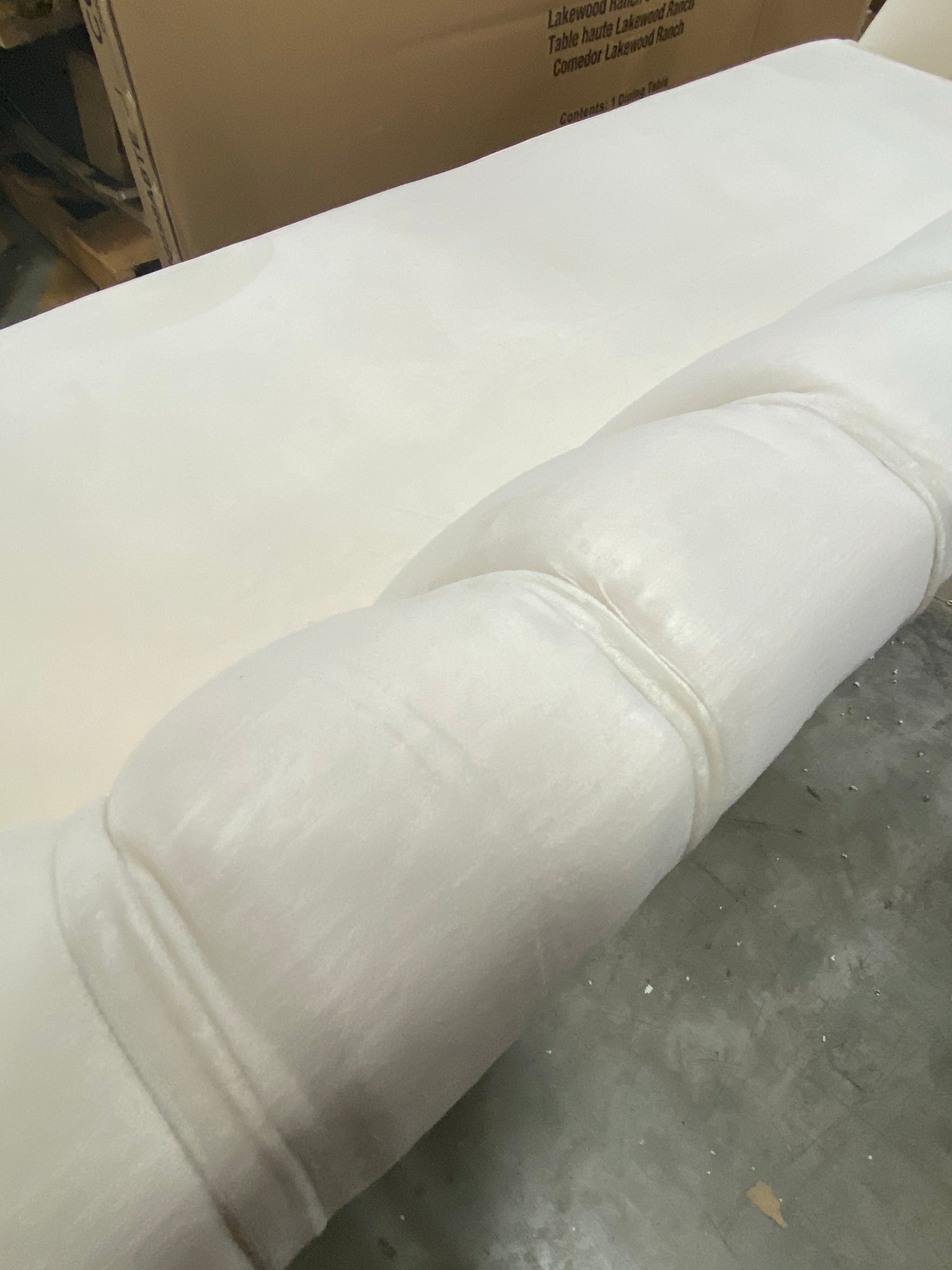 Out of box item- Flare arm velvet sofa in Cream.
