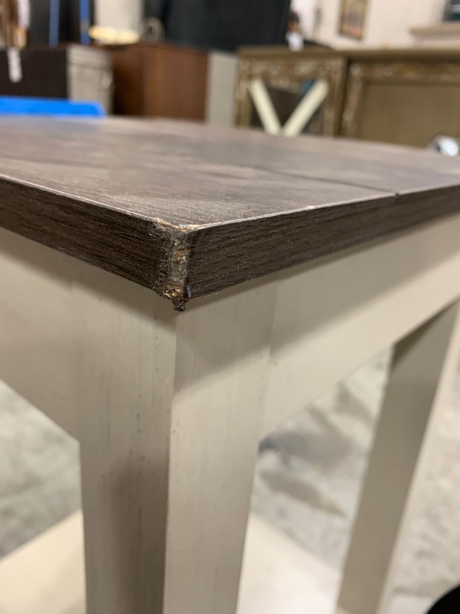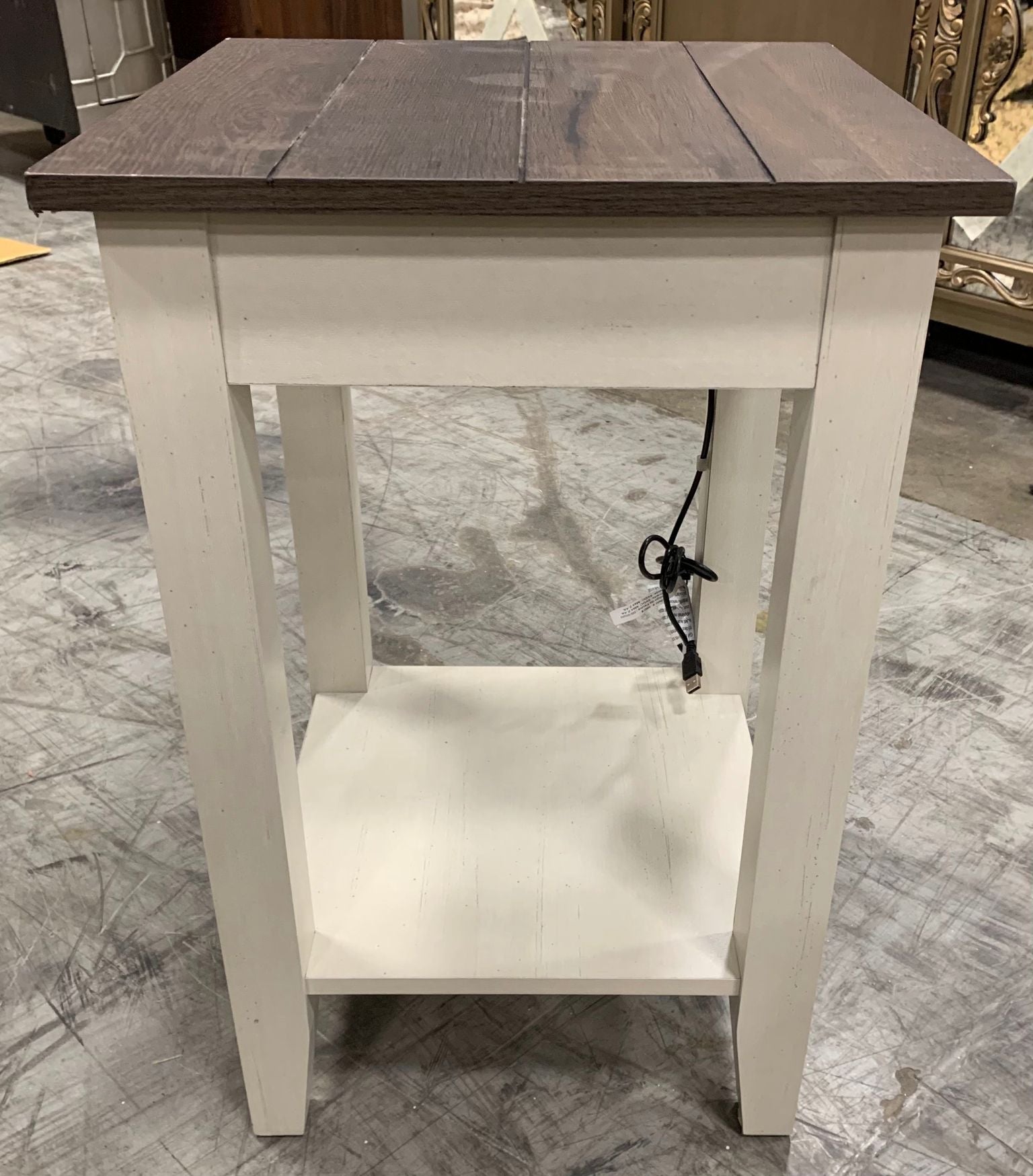 Out of box The color is old wood white, item is out of box, photos show minor cosmetic imperfections.
