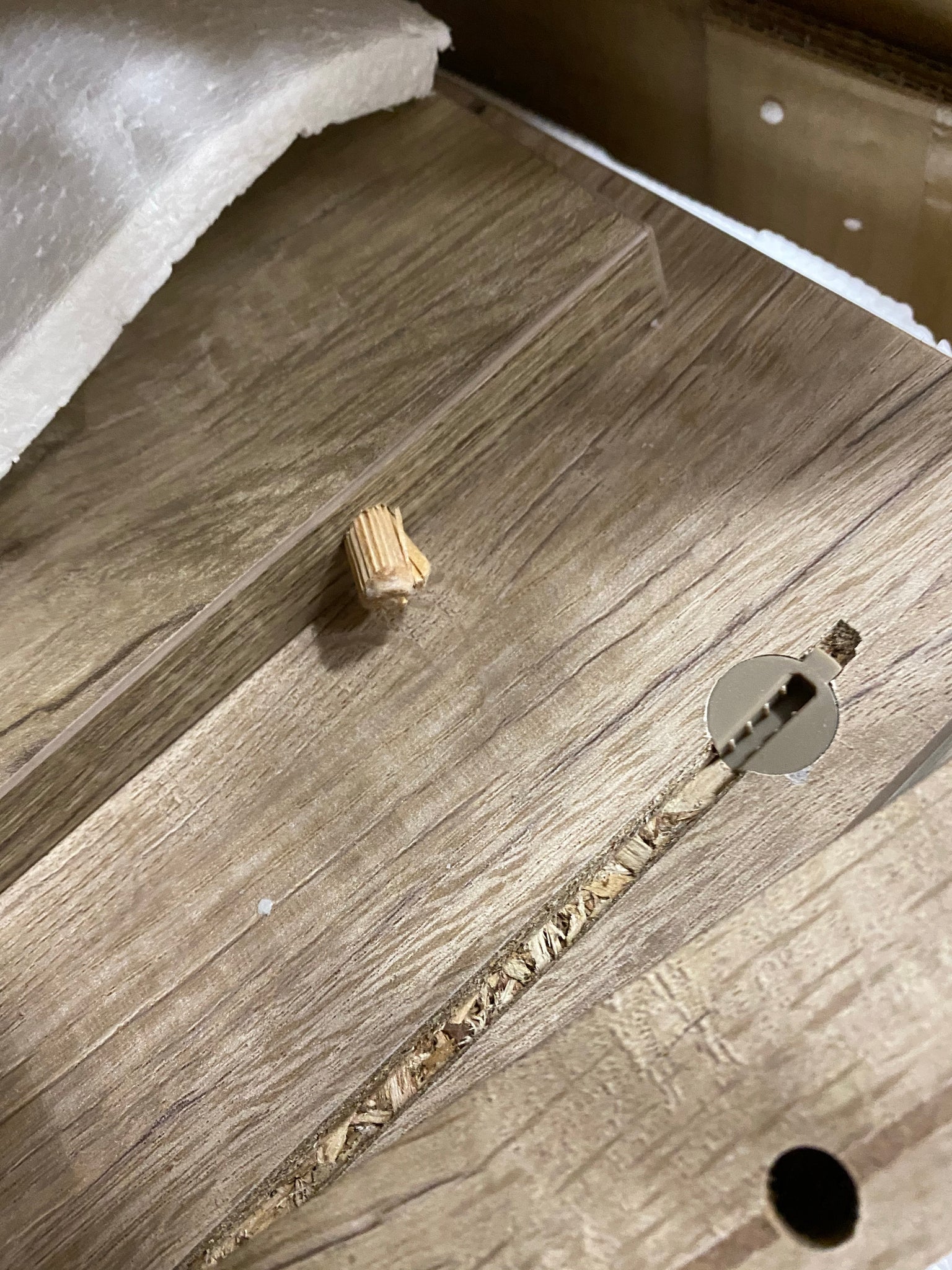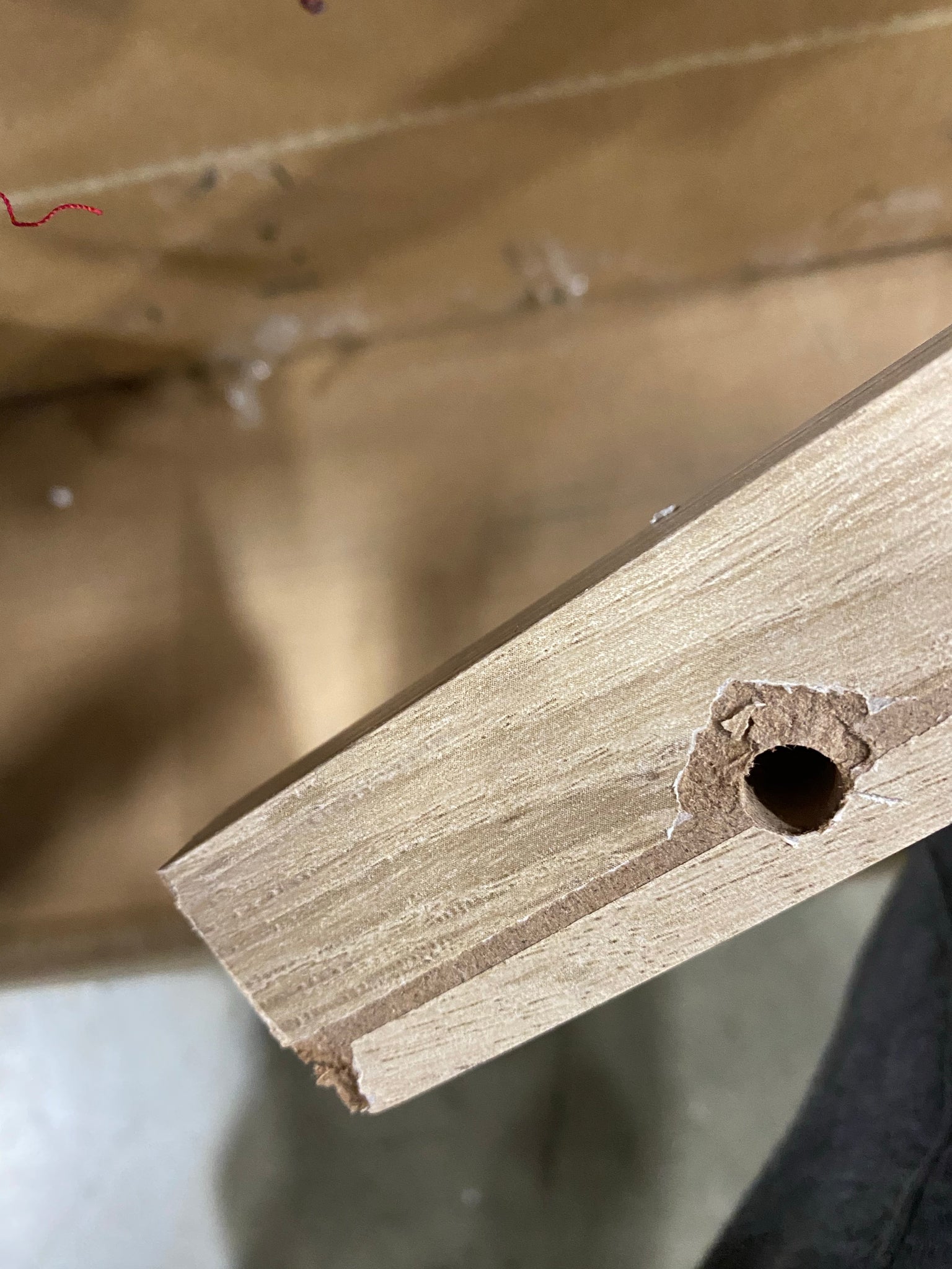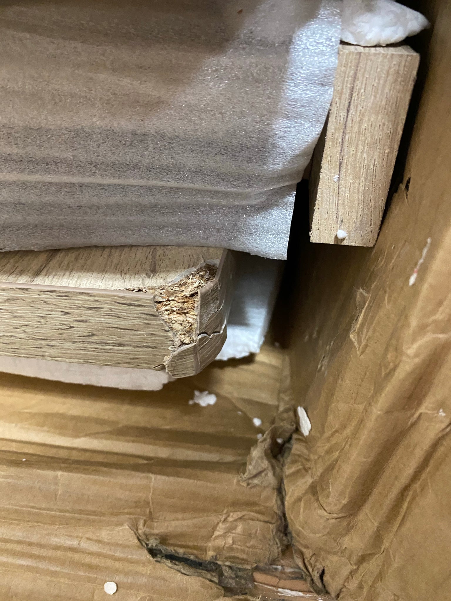 AS IS condition: Top panel damaged on corner due to shipment; small pieces have slight damage. See photos. May be missing some small parts/hardware missing due to previous opening. Item appears in otherwise good condition.