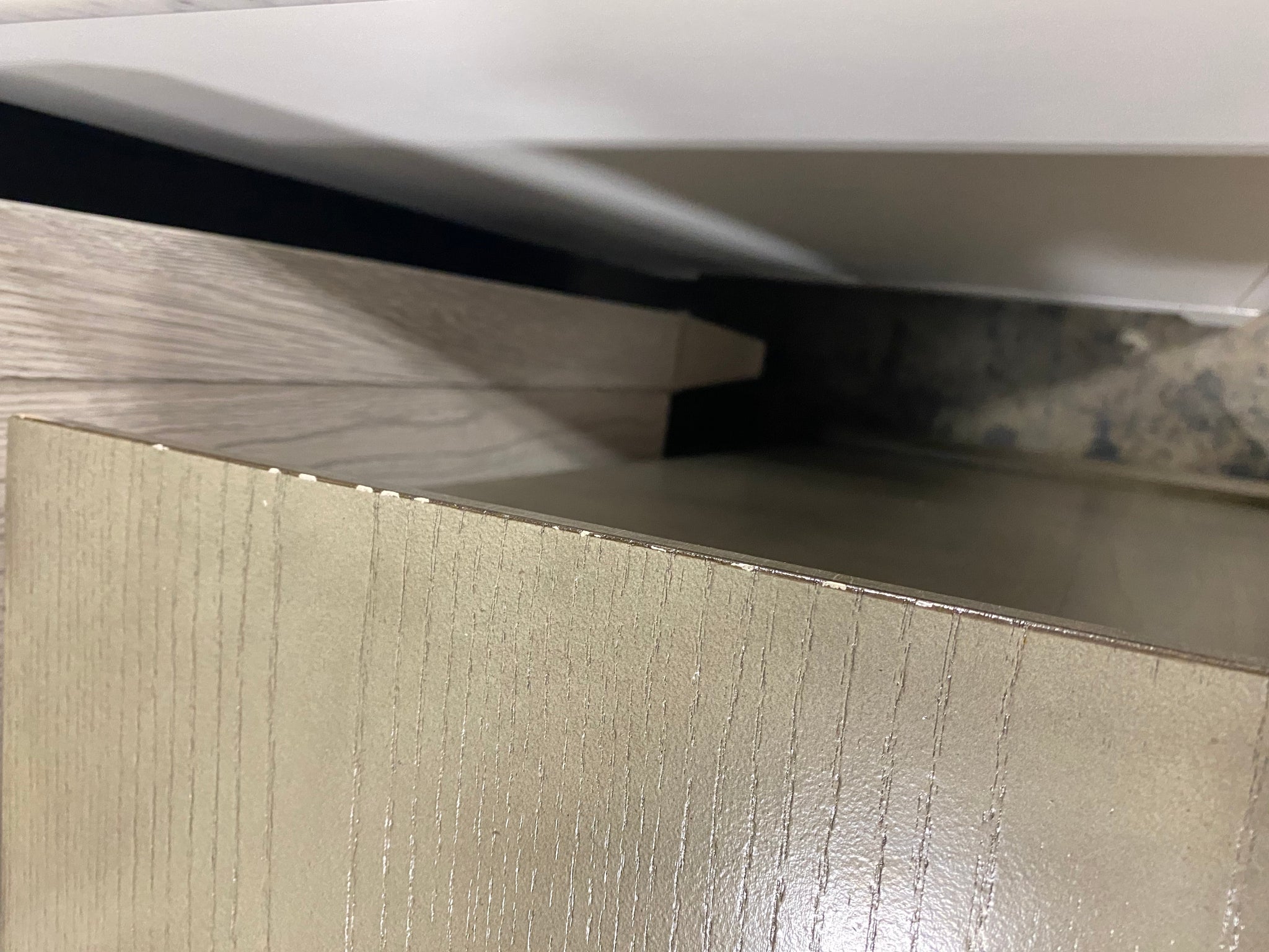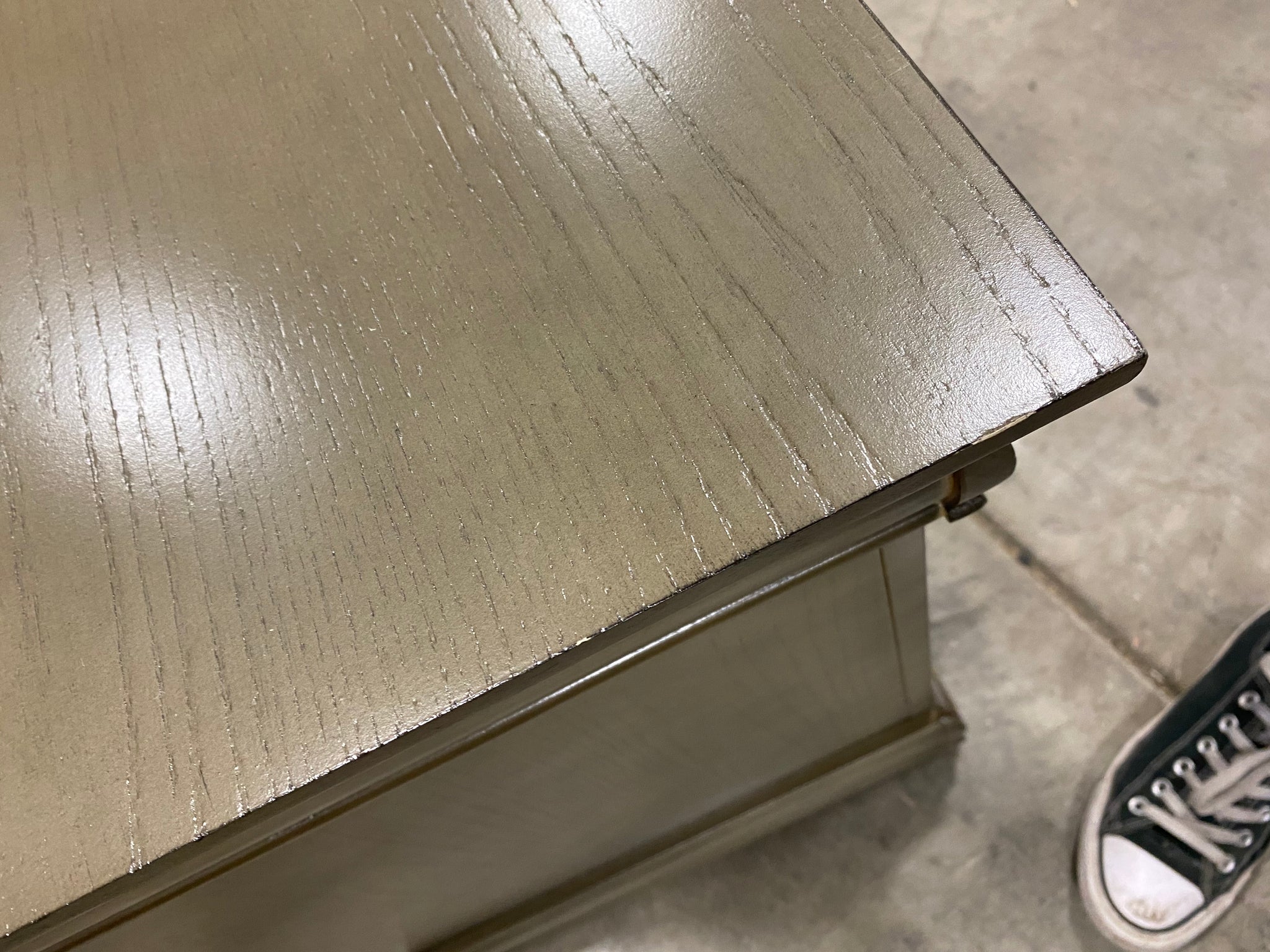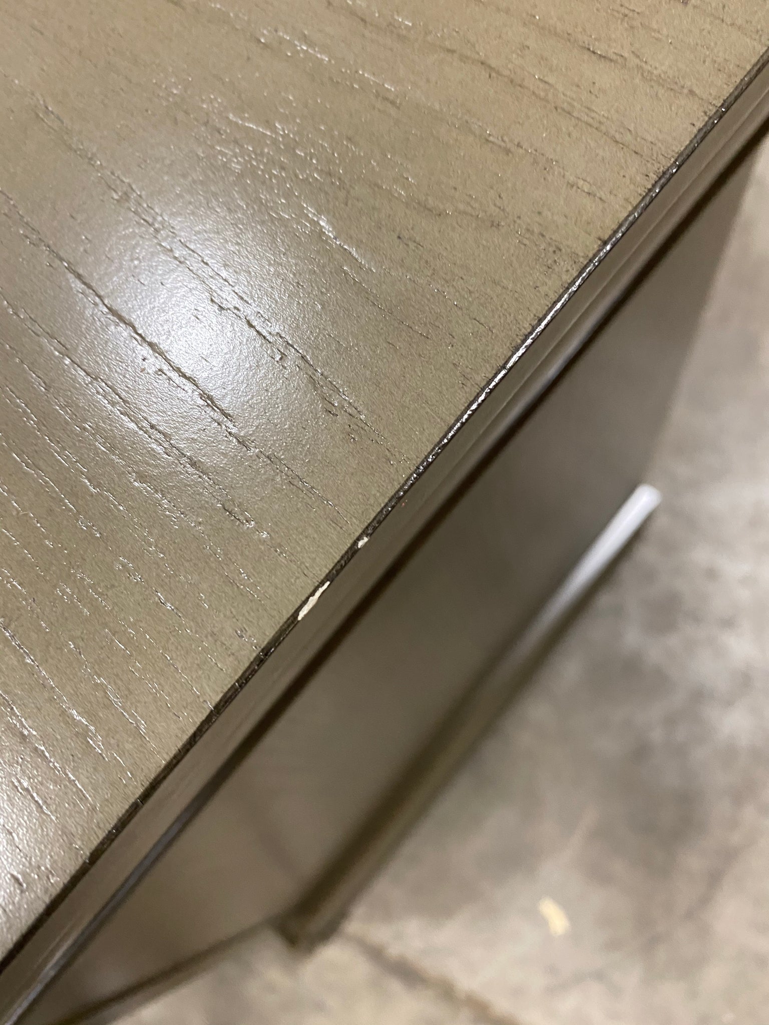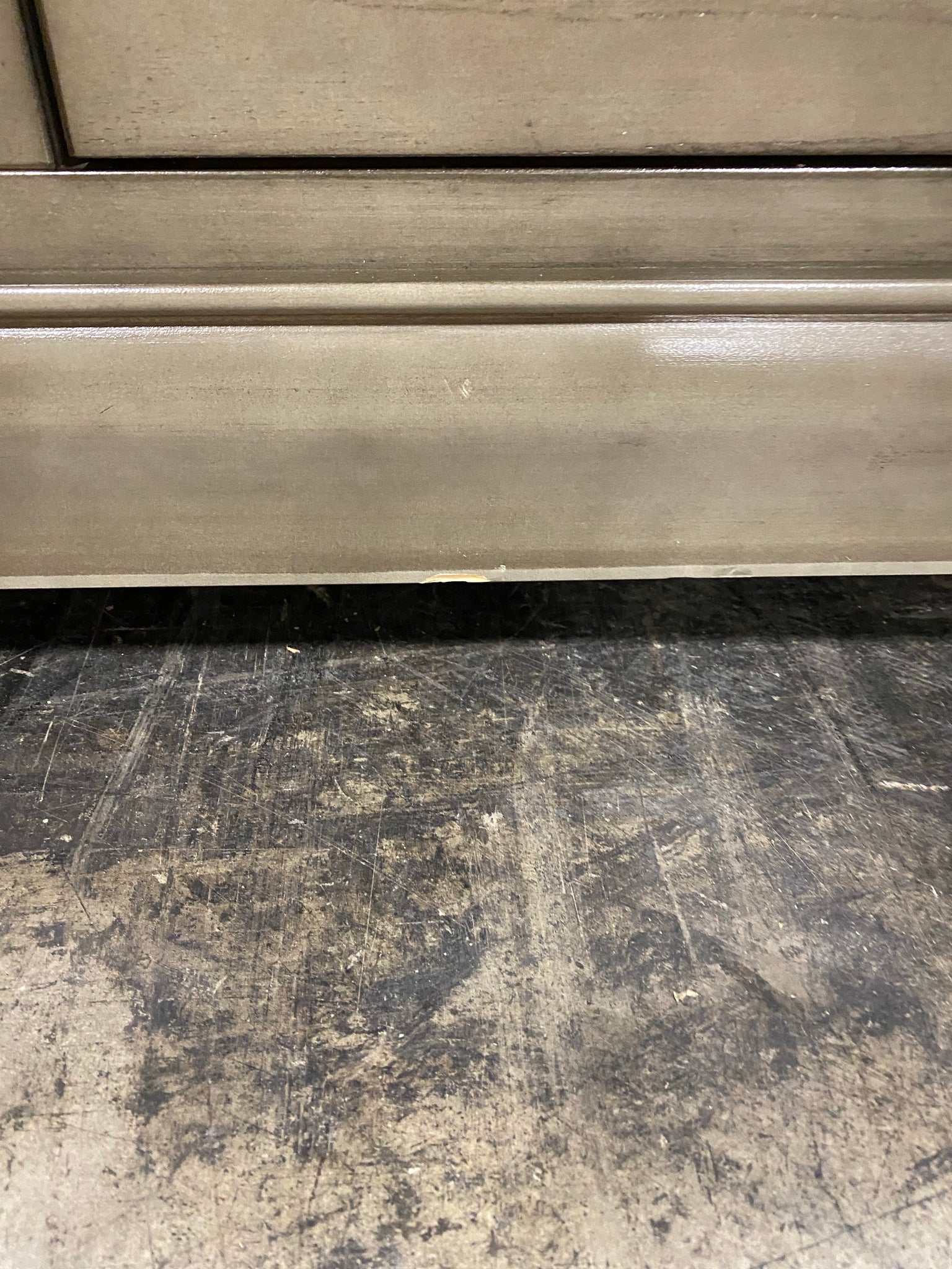 Dresser has slight dings along top side edges of dresser;small ding on front bottom edge. Item in otherwise great condition.