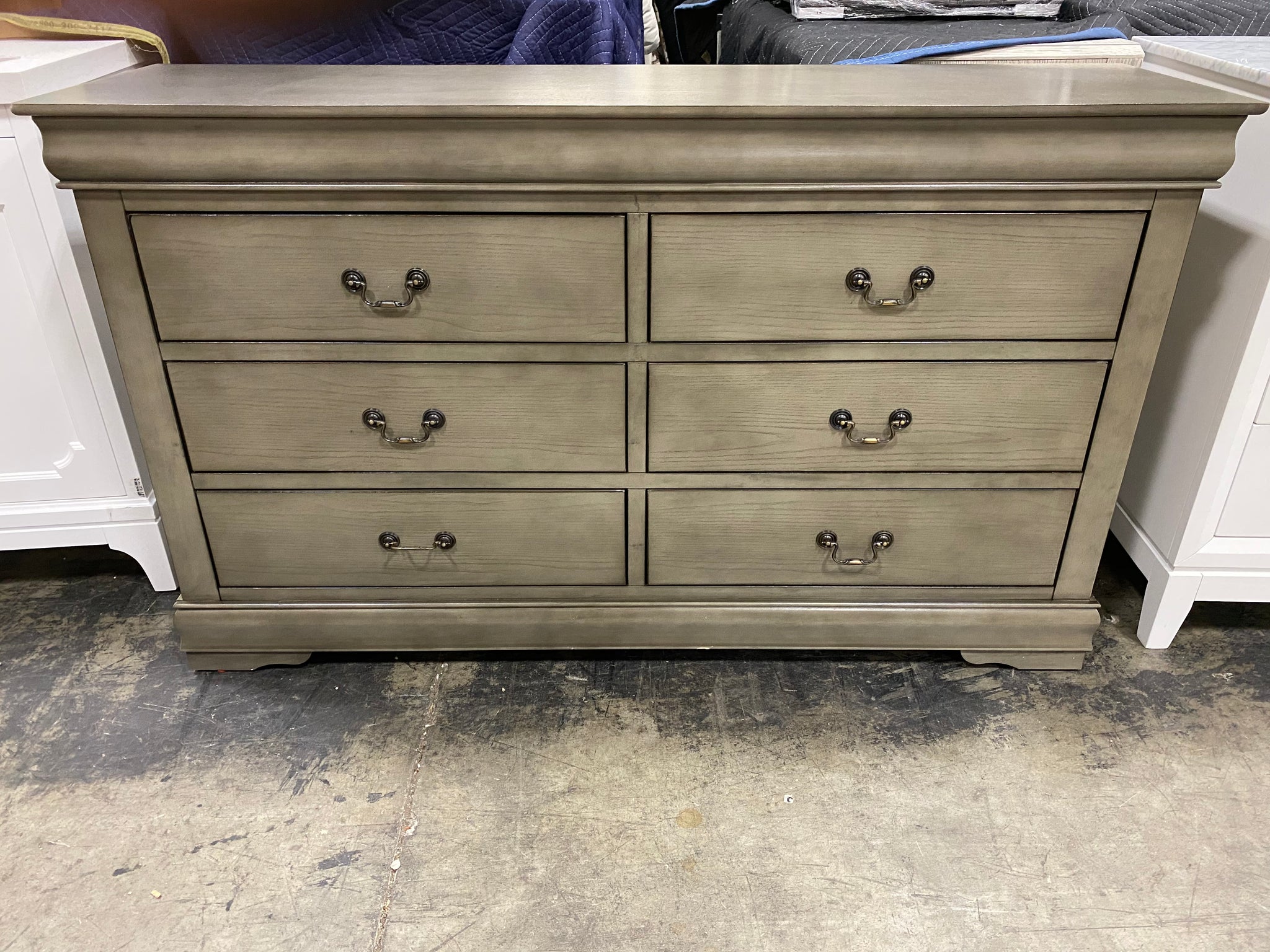Out of box 6 drawer double dresser and 2 drawer nightstand set in Gray finish.Assembled.