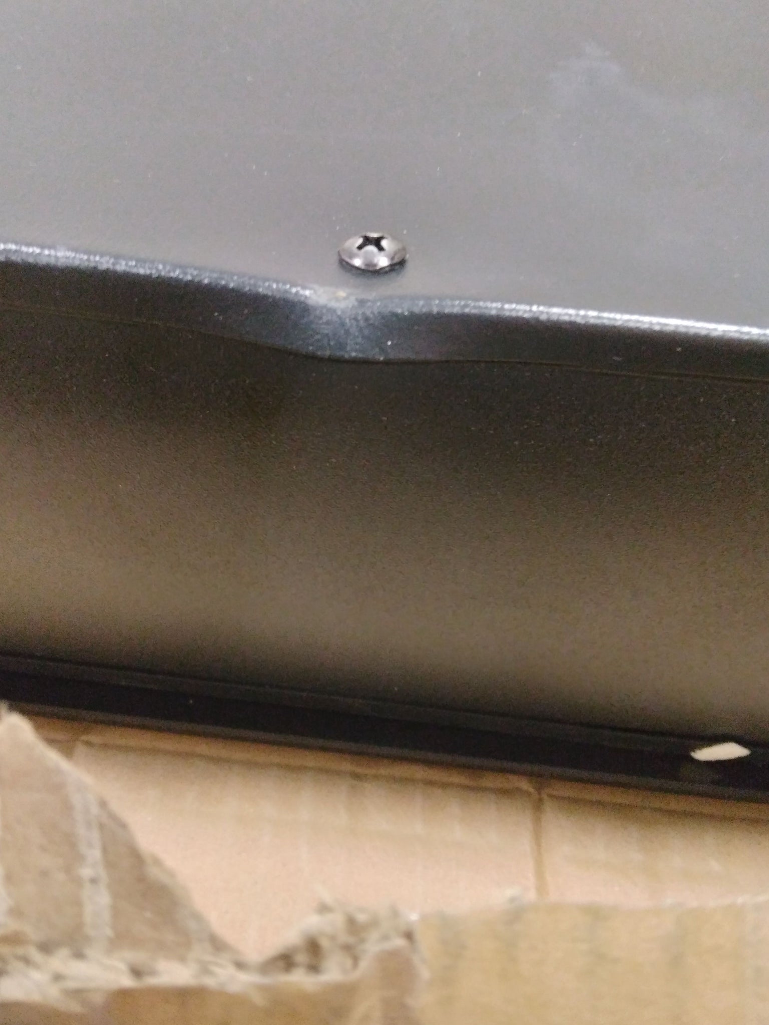 Open Box, The color is black, Size: 50", AS IS: This fireplace cannot be tested before purchase. There is a slight dent on the back of the fireplace. See for photo.