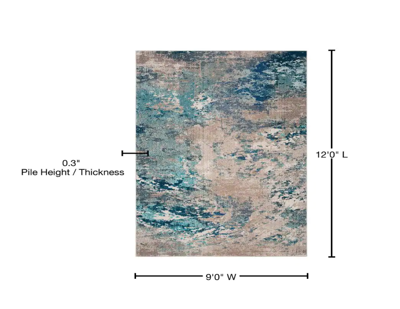 Open Box, The color is Blue/Gray, Size: 9' x 12', Previously opened.