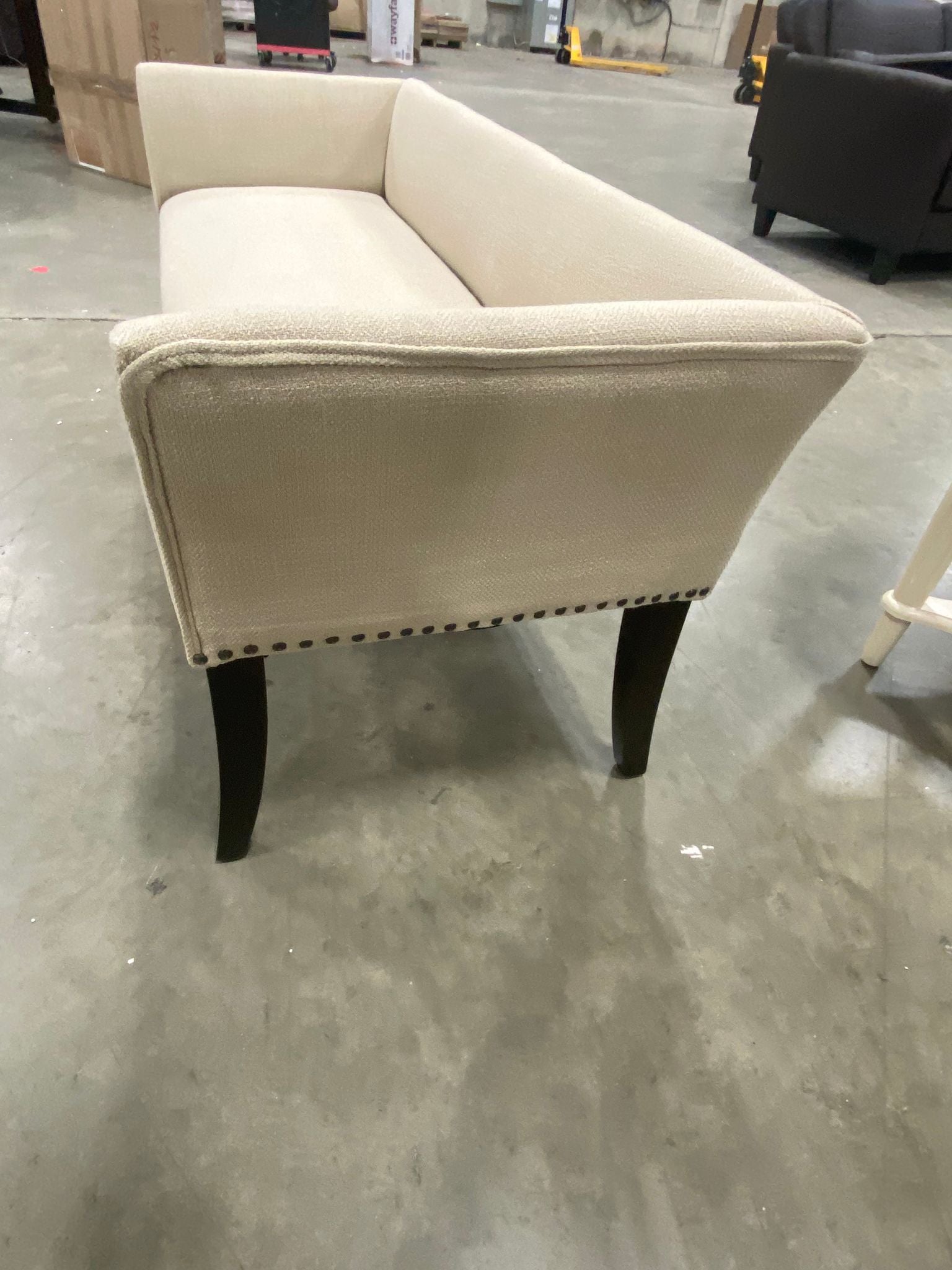 Out of box, The color is cream, Item in good condition.