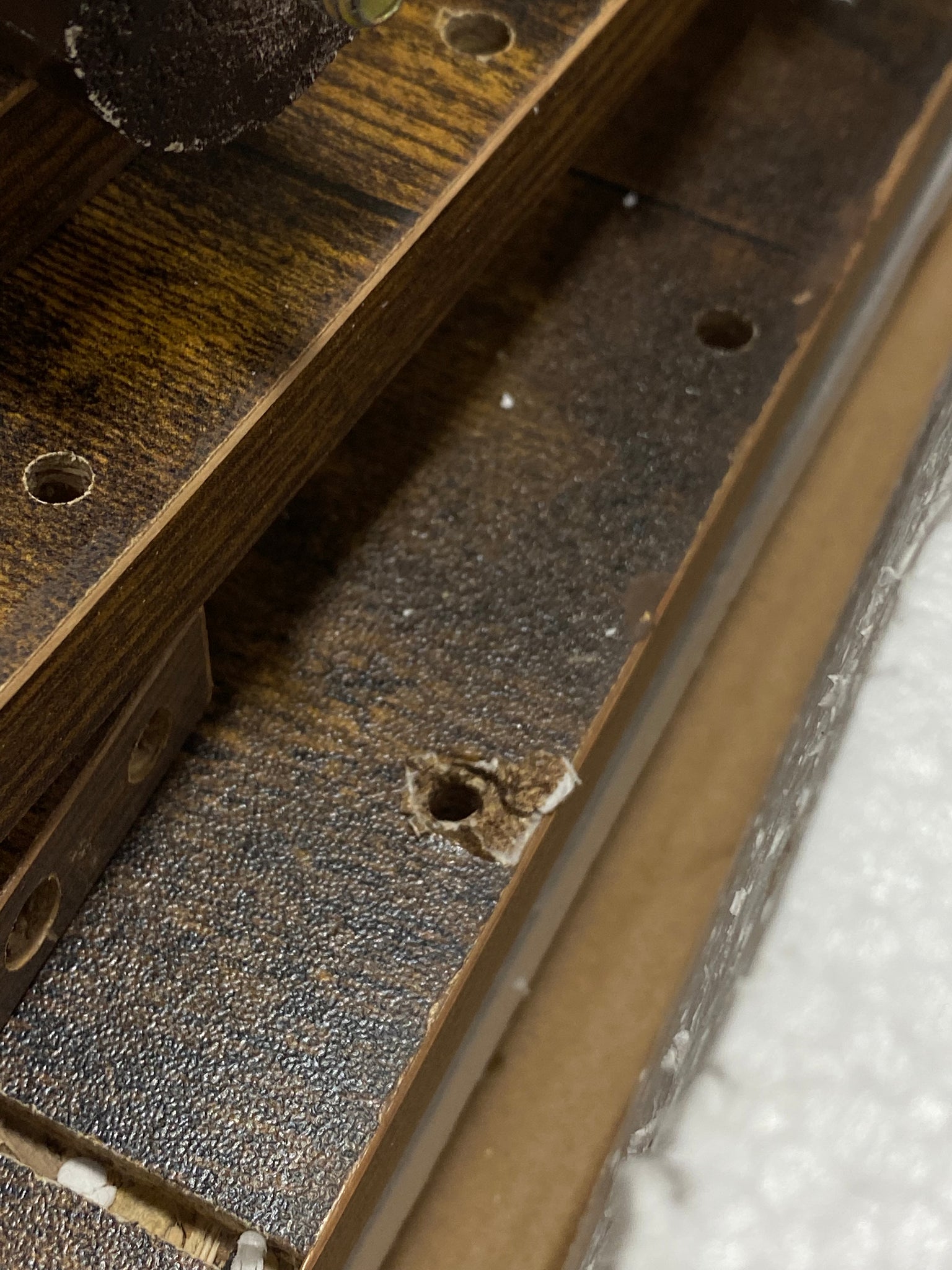 Please note: AS IS: Camlock joints and holes have slight damage on them. Legs very scratched/scuffed. May be missing some screws due to previous opening.