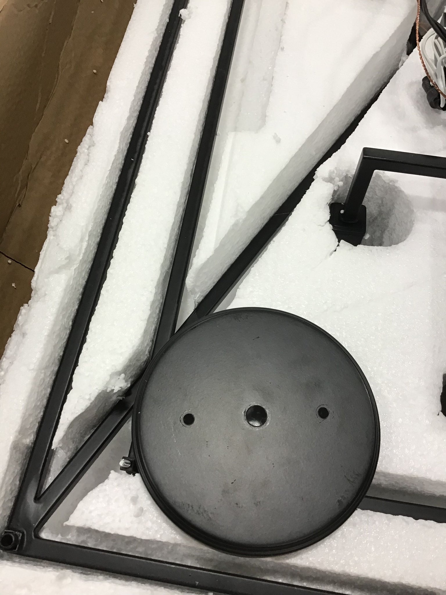 Open Box, The color is: matte black, Slight scuffs on the cap for the ceiling. See photo