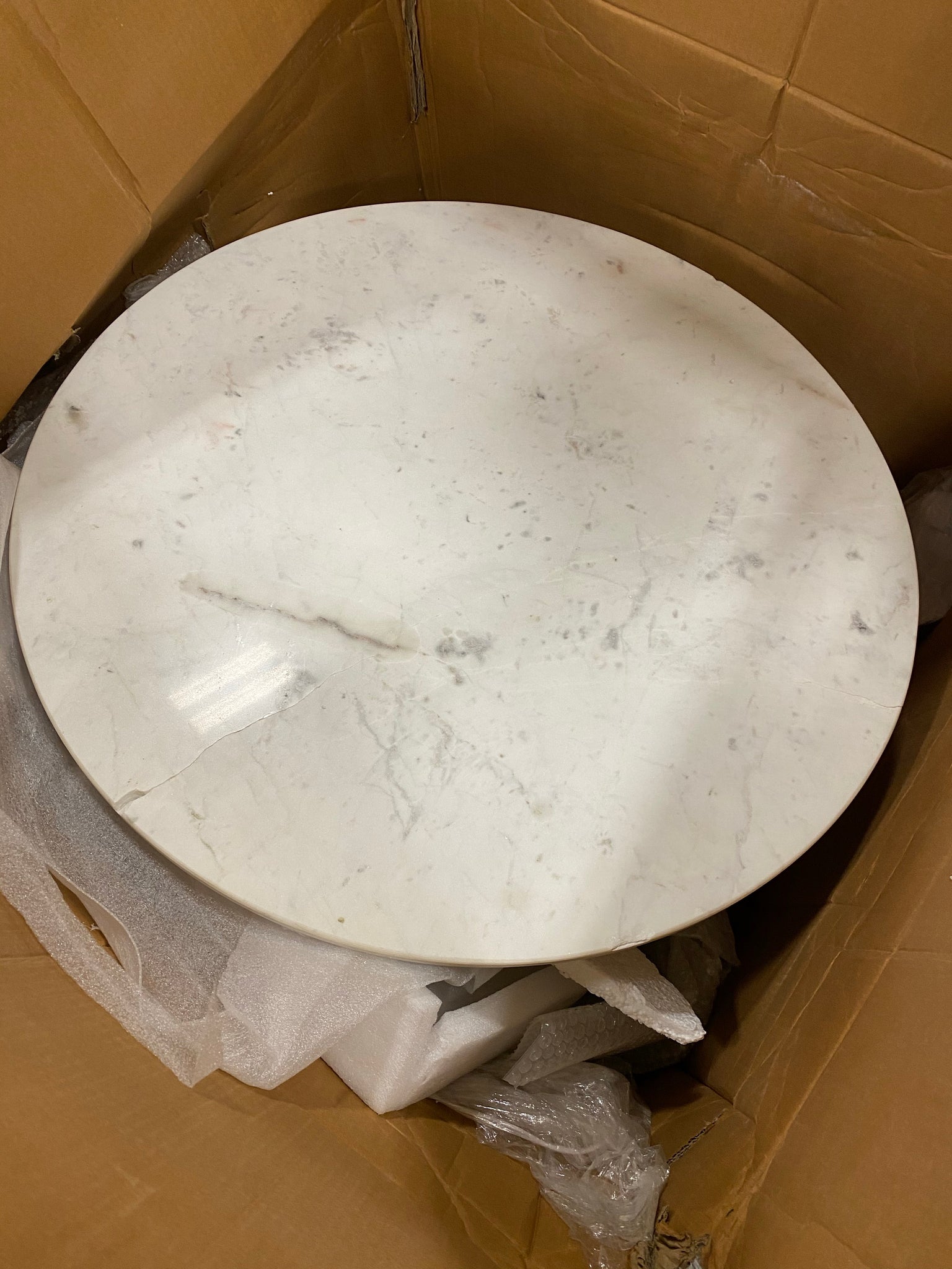 AS IS Condition-Marble top cracked/chipped due to shipment. Top still firmly attached to base. See photos. Item in otherwise good condition.
