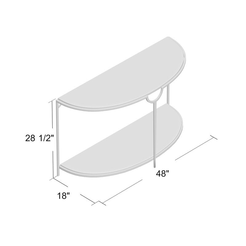 Out of box half moon marble top console table with granite gray brushed metal base.