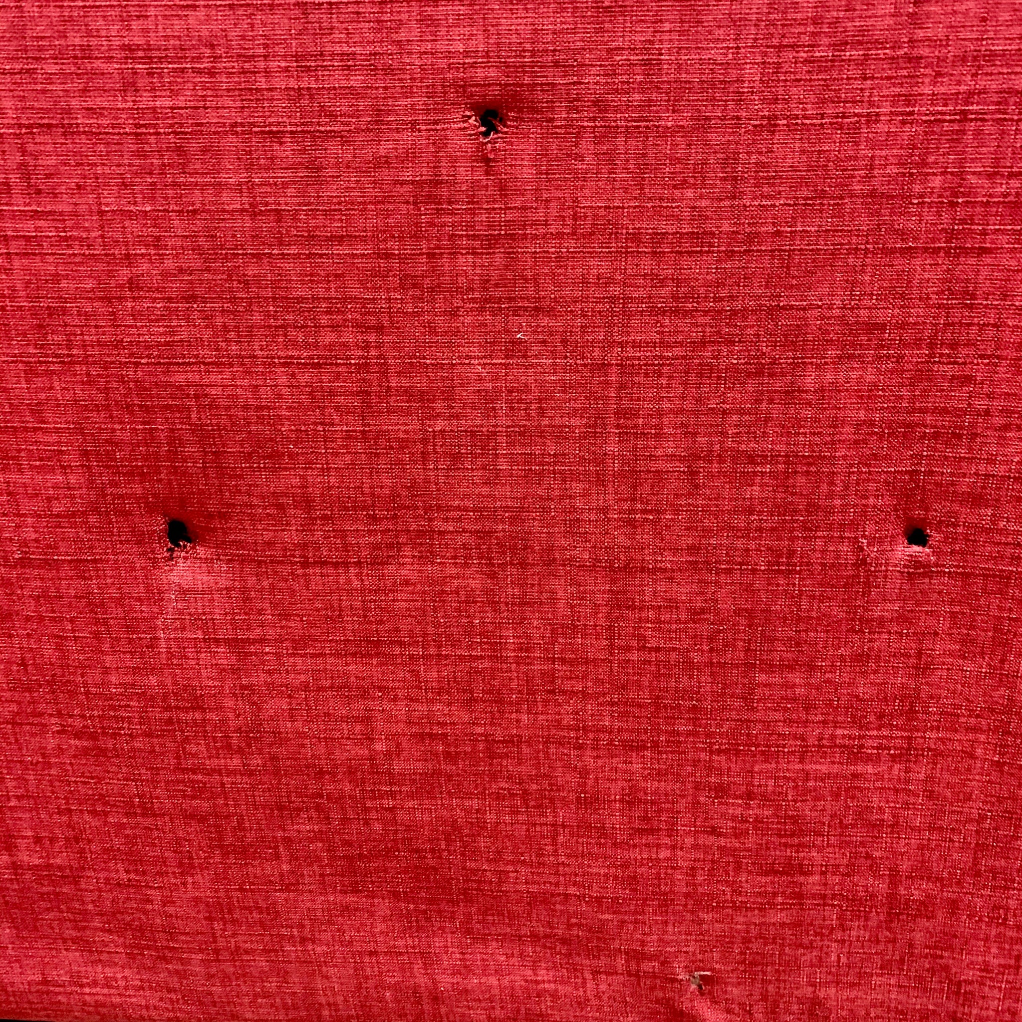Fully assembled reversible sectional ottoman upholstered in microsuede/microfiber in the color bulldozer burgundy, with a solid wood frame and legs in a black finish. This item includes the sofa, ottoman, and toss pillows. Item does have a few small holes in the back due to open shipment (see photos for reference) but otherwise appears to be in great condition.
