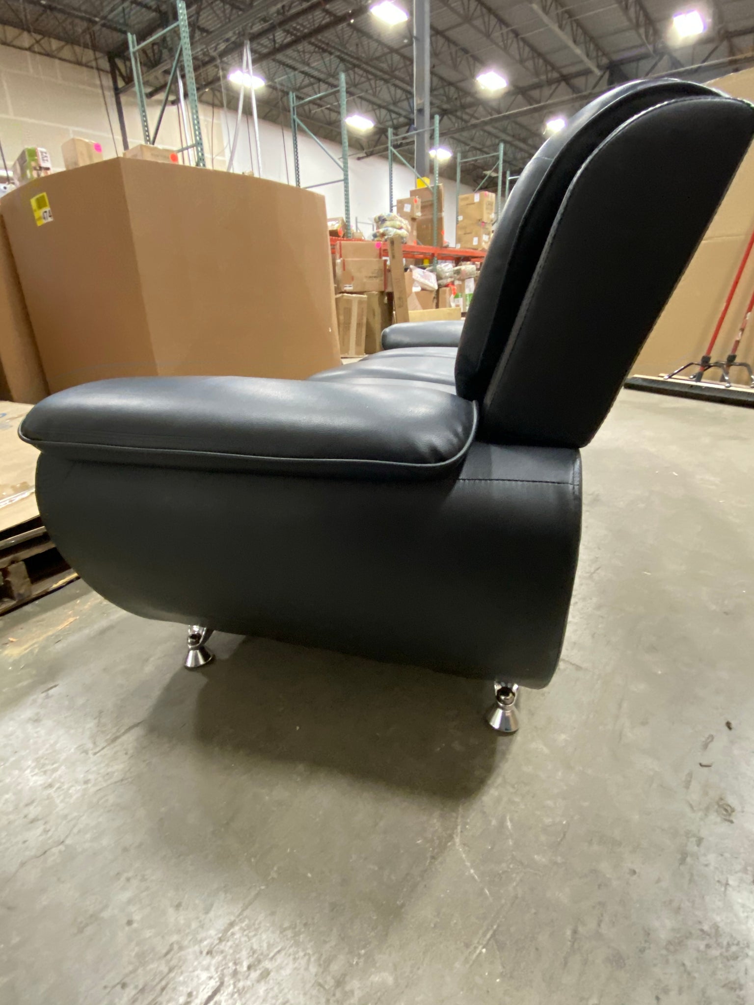Faux leather sofa in Black with chrome metal legs. Assembled.