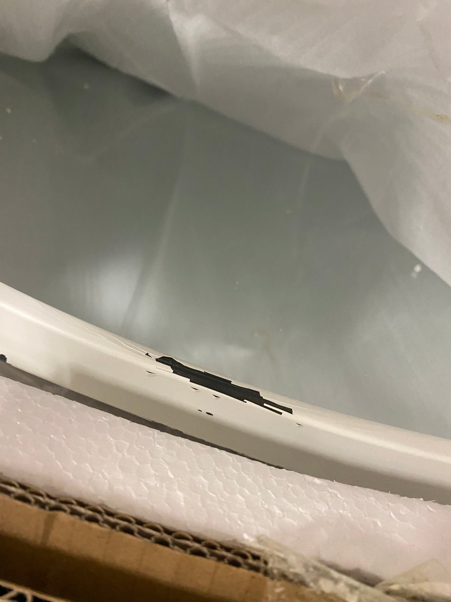 Note: AS IS Condition: Mirror has chipped paint/dent damage on the rim edge. See photo. Mirror is in good condition.