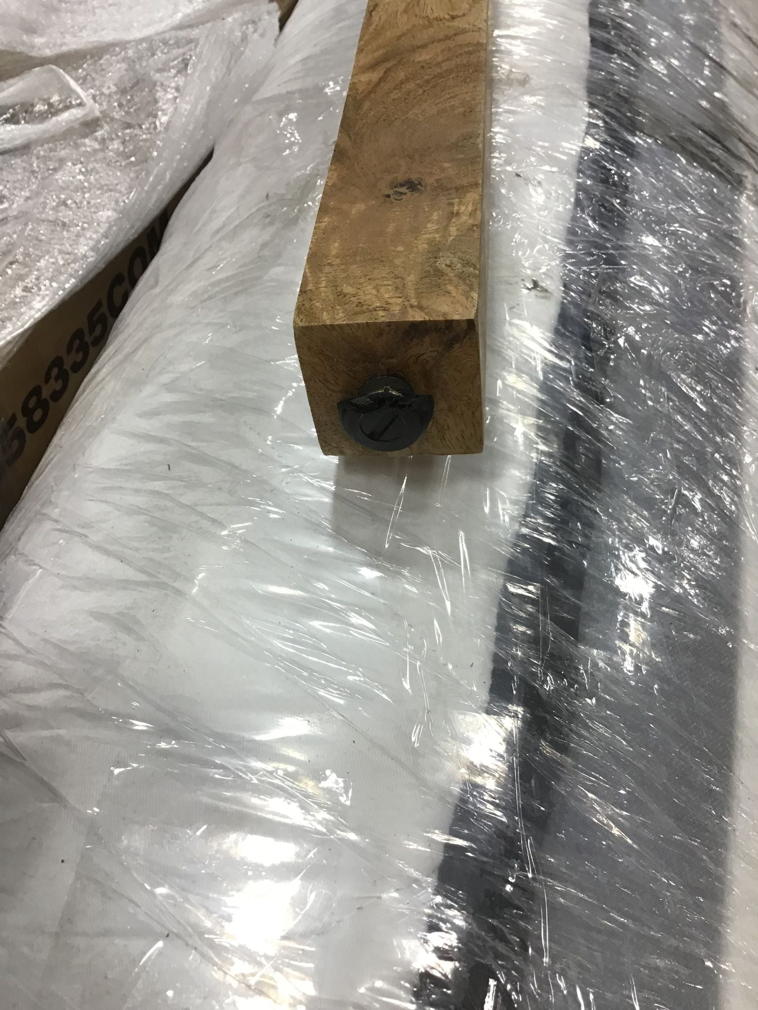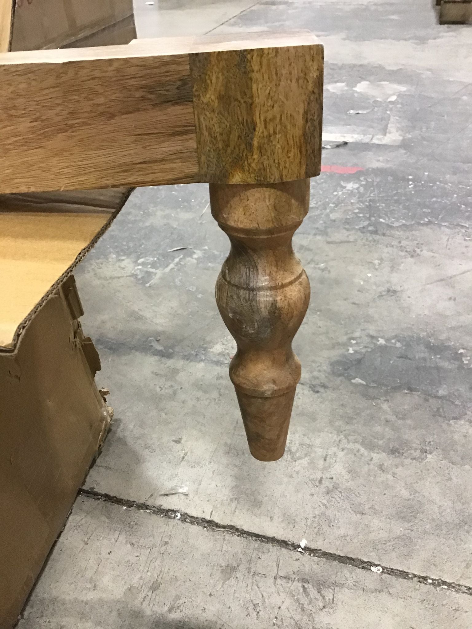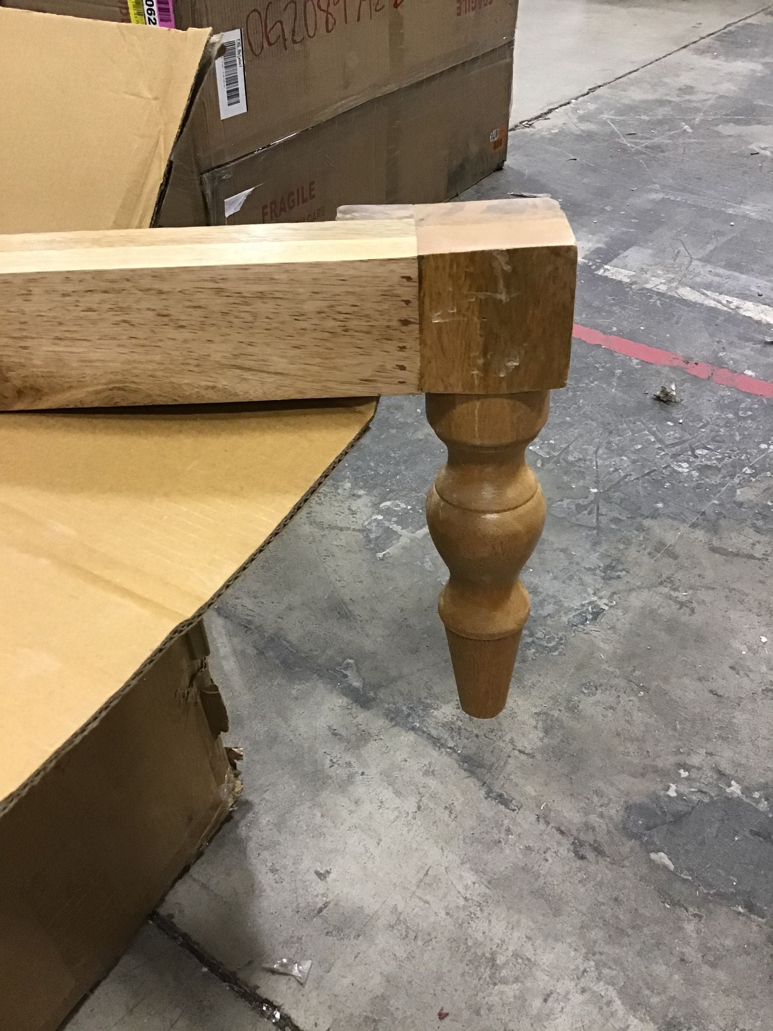 Open Box, The color is natural, White scuffs on legs. One foot has a broken peg on the bottom. See photos