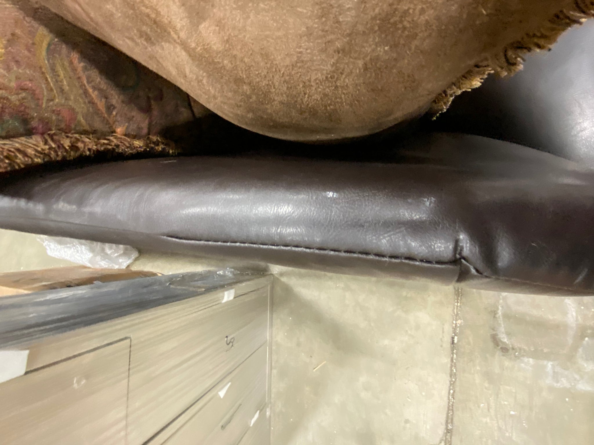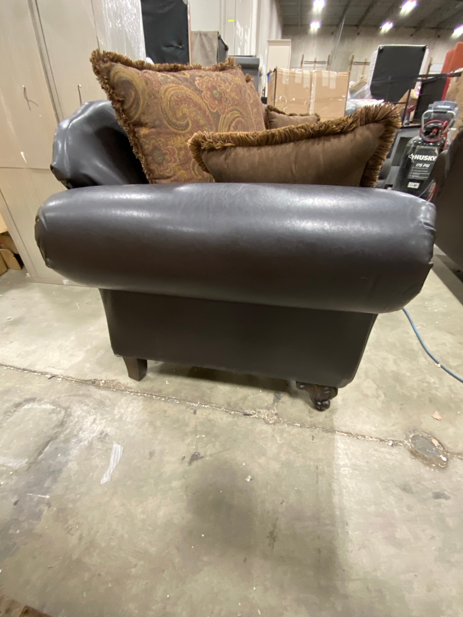 Please Note: Loveseat has very small tear on back of headrest. Both items has slight scuffing on bottom corners of sofa due to open shipment. Slight white spots on both headrest. See photos. Items in otherwise great condition.