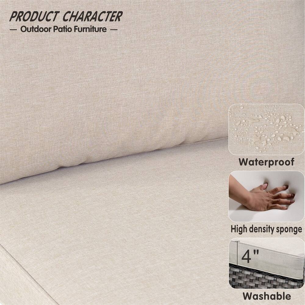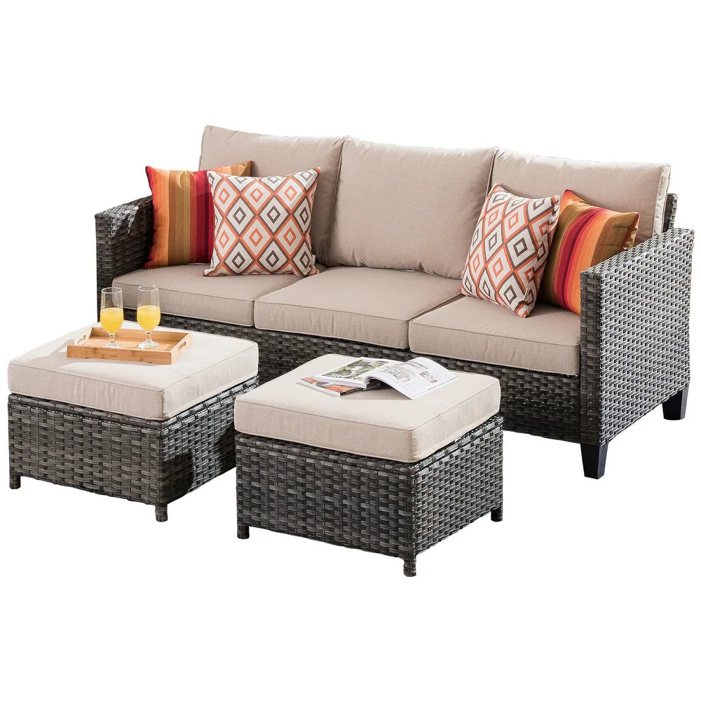 Note: Set includes sofa, 2 ottomans, cushions, and 2 throw pillows.