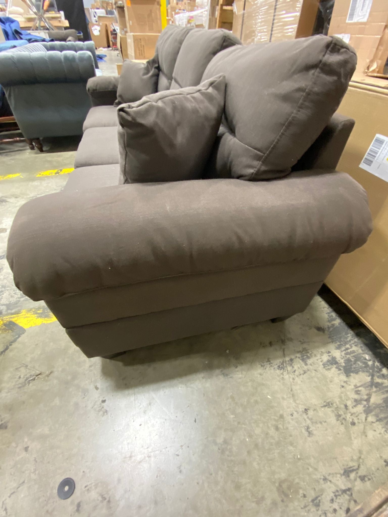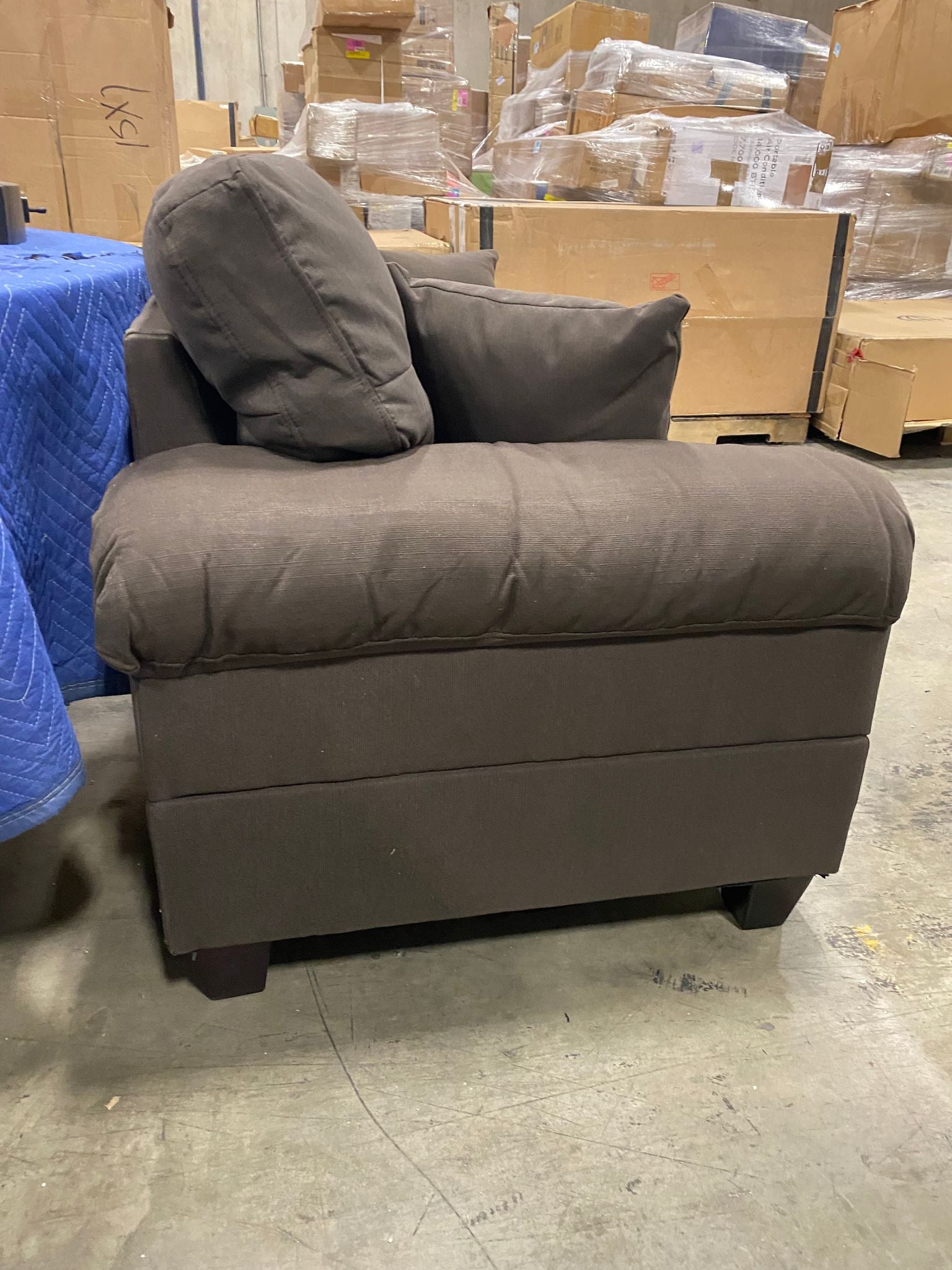 Out of box, The color is coffee, 2 Piece Set. Items appear to be in good condition.