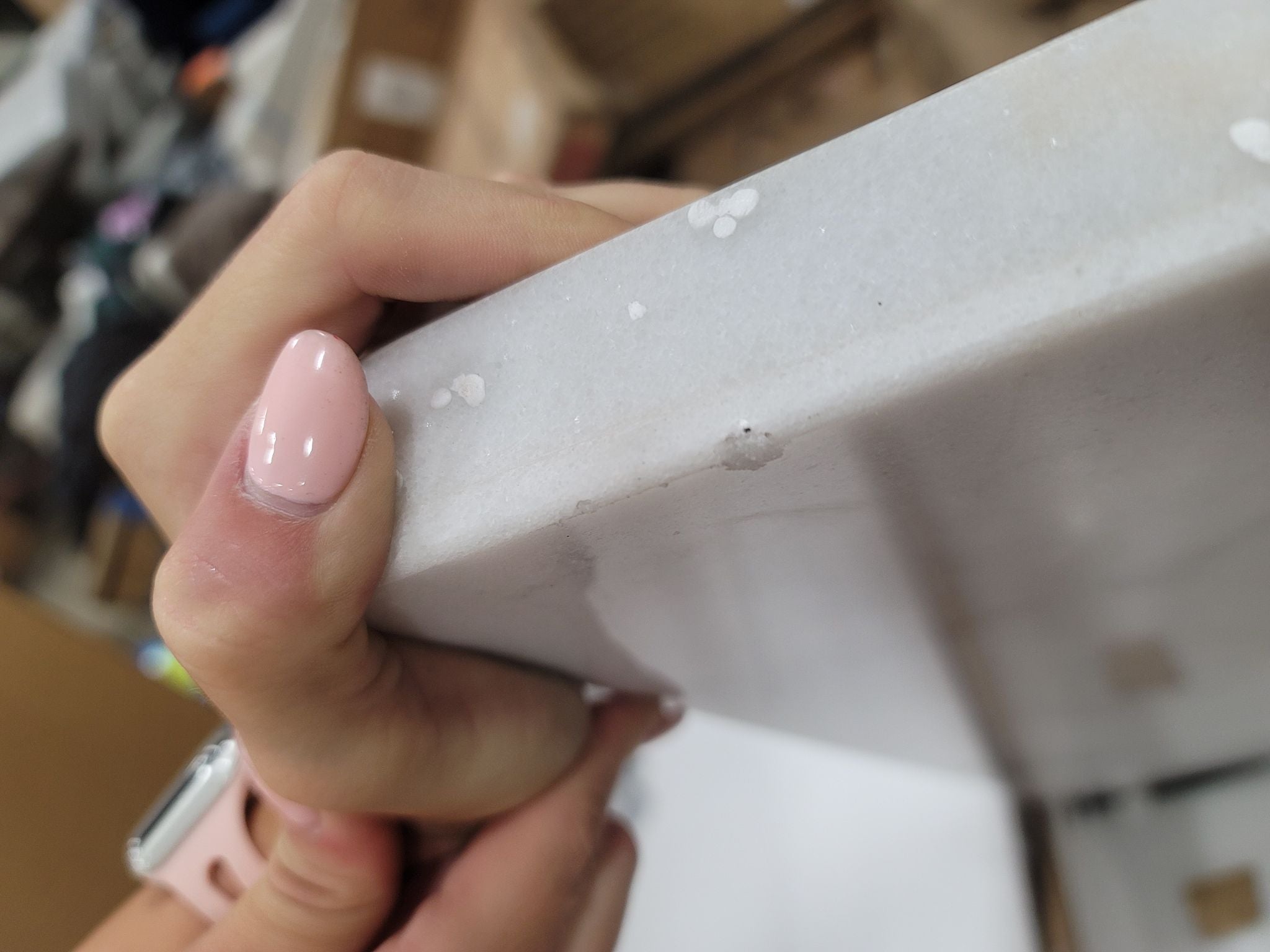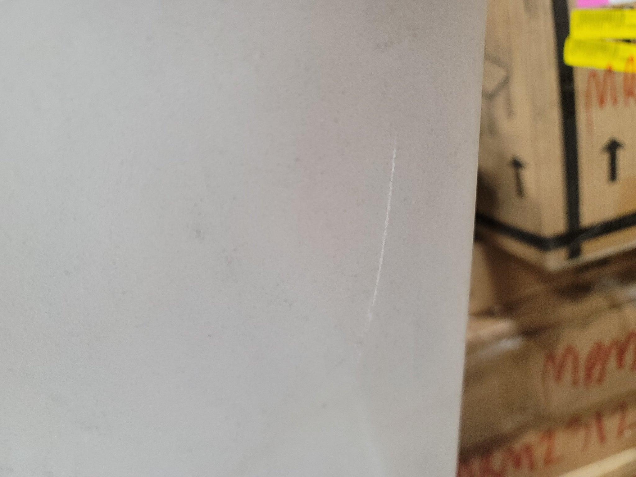 Open box, There are four scrapes about 2" long. There is a small chip on one corner.