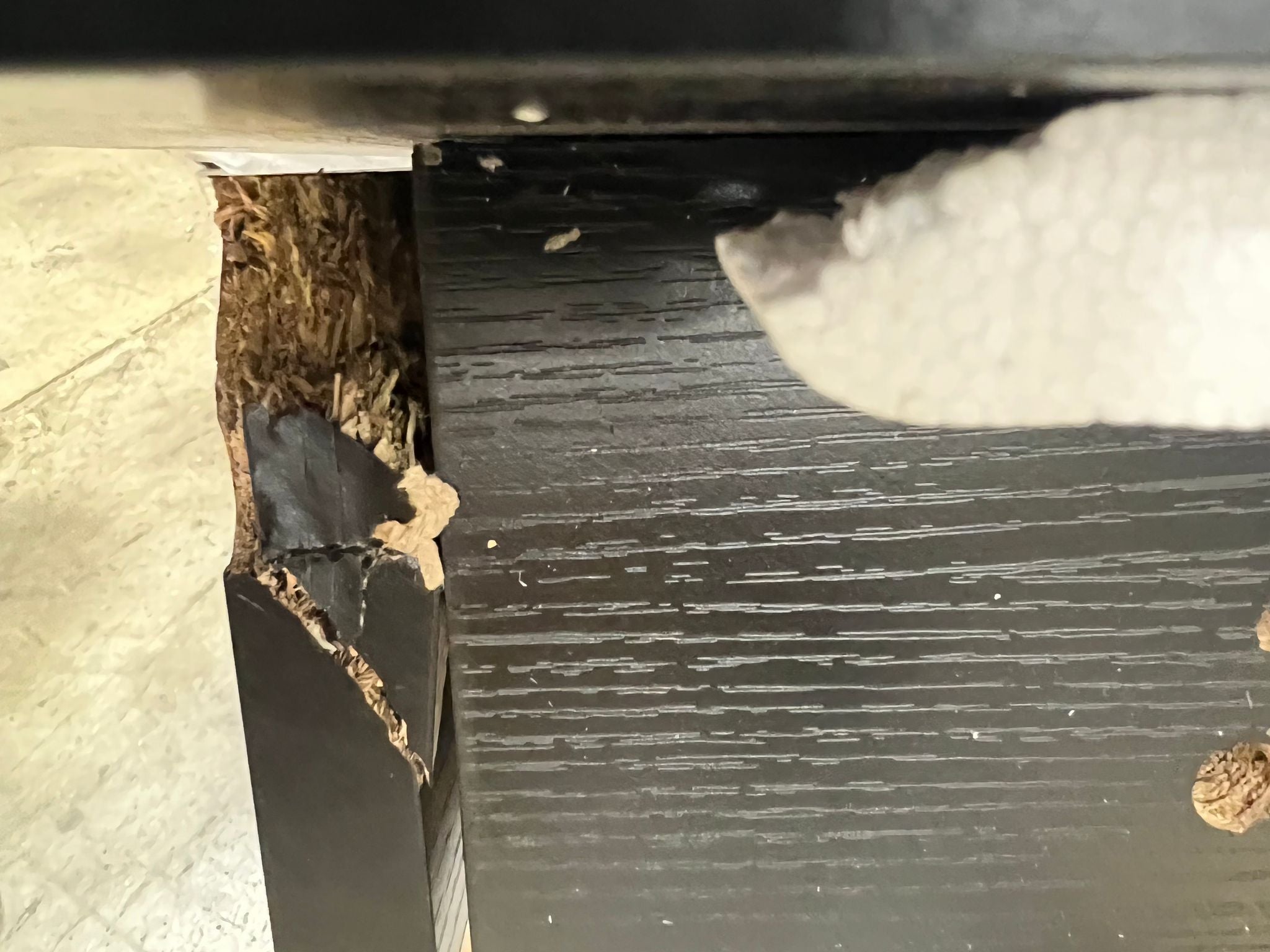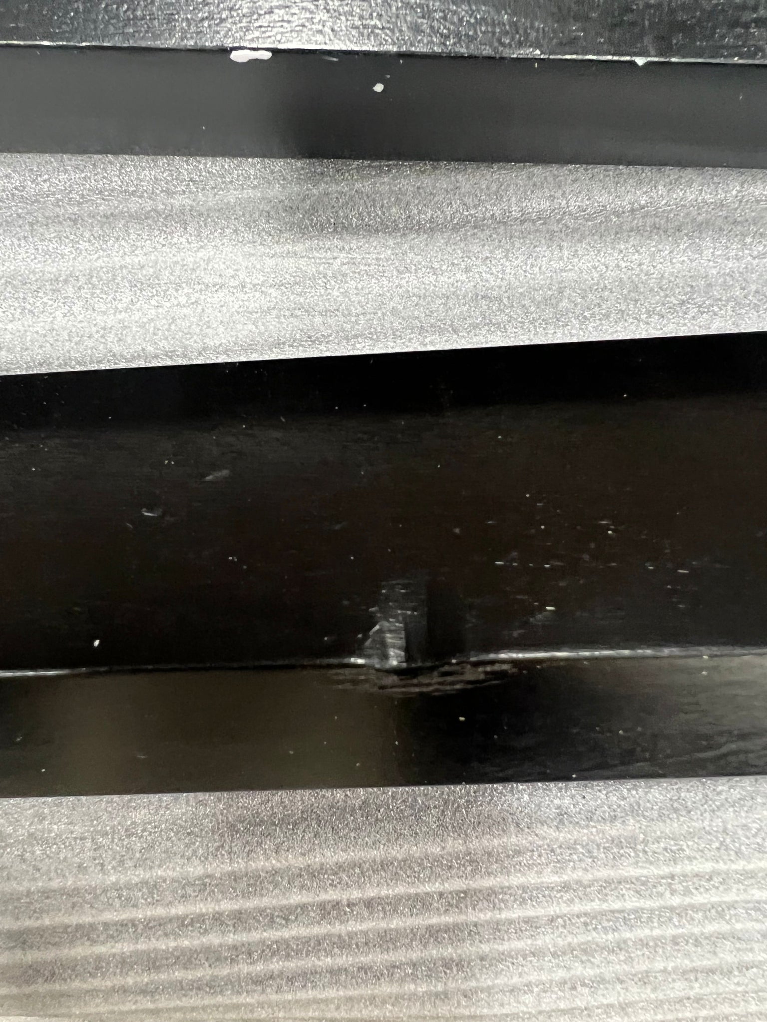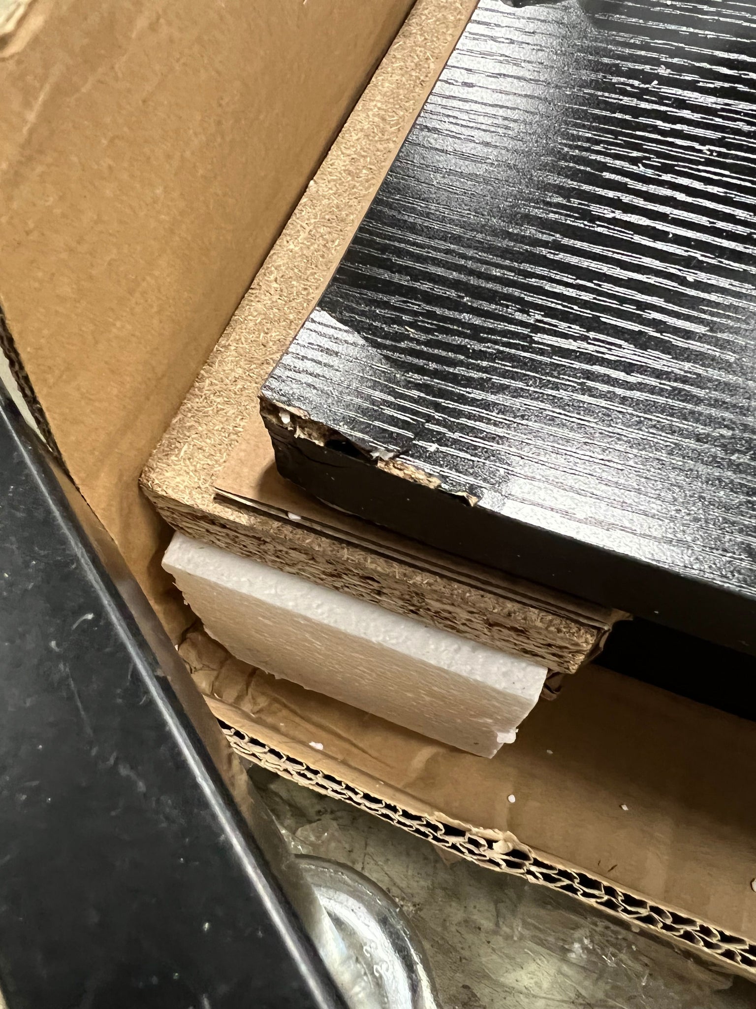 Note: Smashed corner and dented leg. Also smashed underneath base.