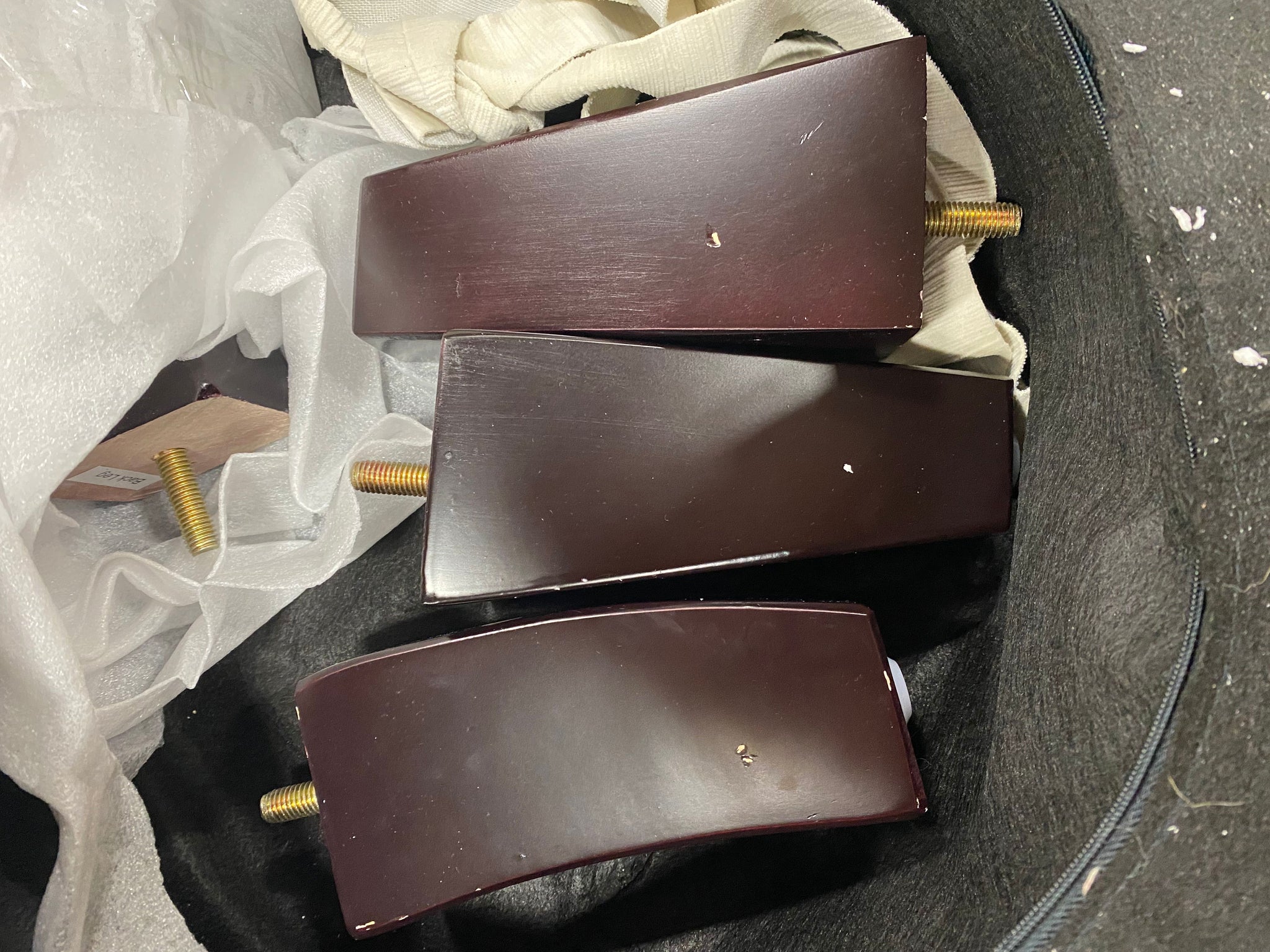 Open Box, The color is beige, Please Note: Legs have some dings throughout due to shipment. See photos. Item in otherwise good condition.