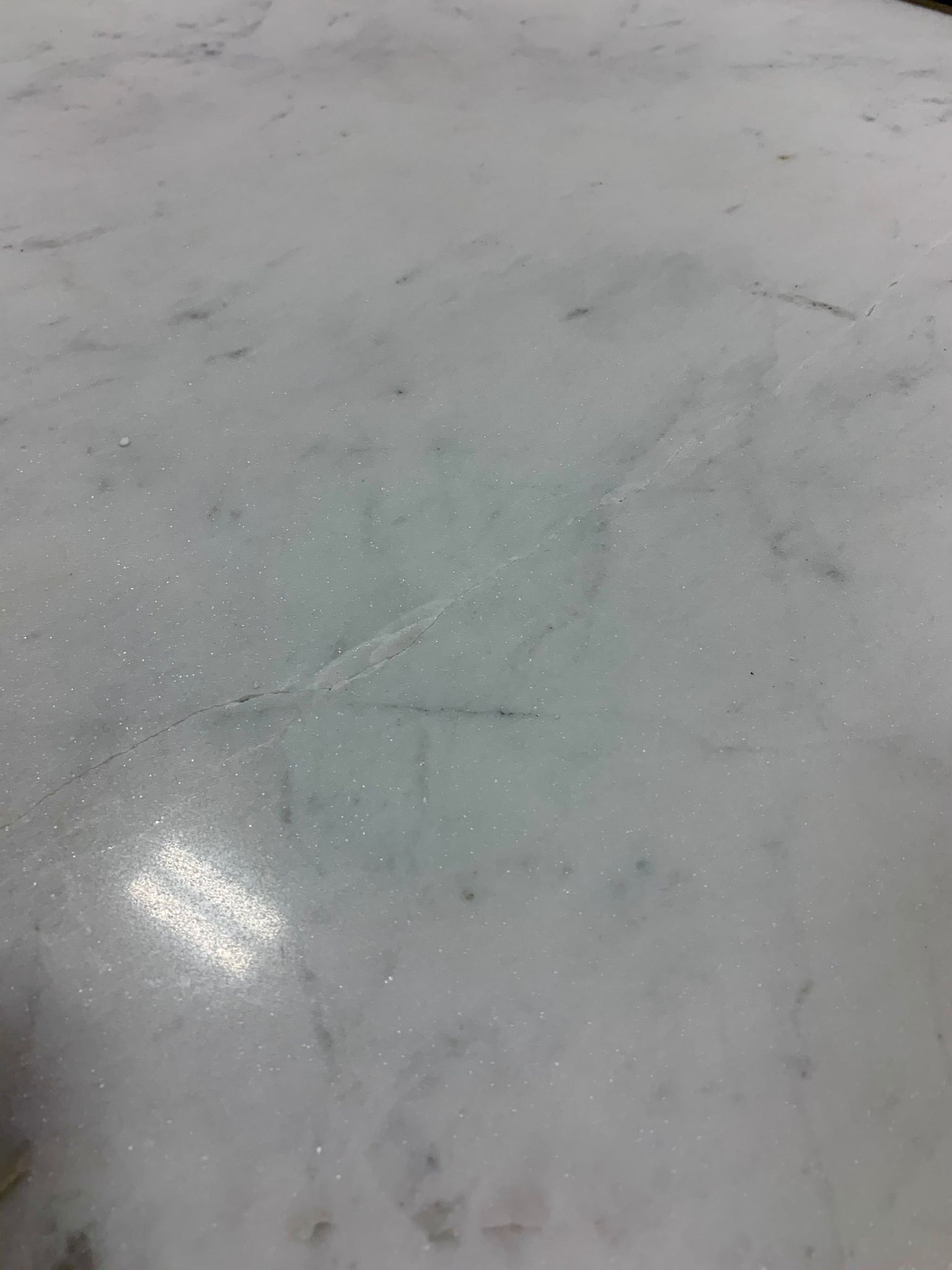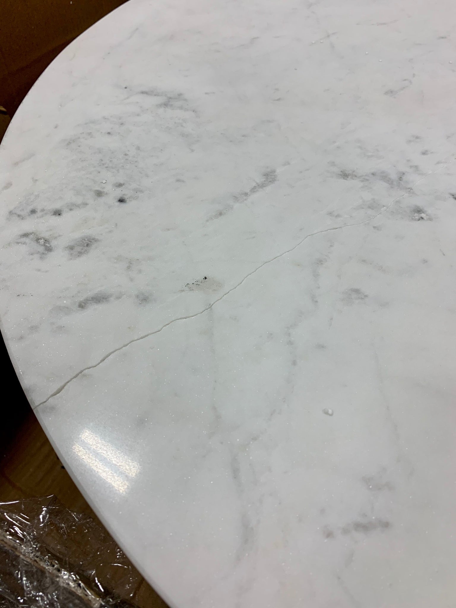Open Box Item, AS IS condition - Marble table top is cracked all along the top but is still fully attached to base. See photos for reference.