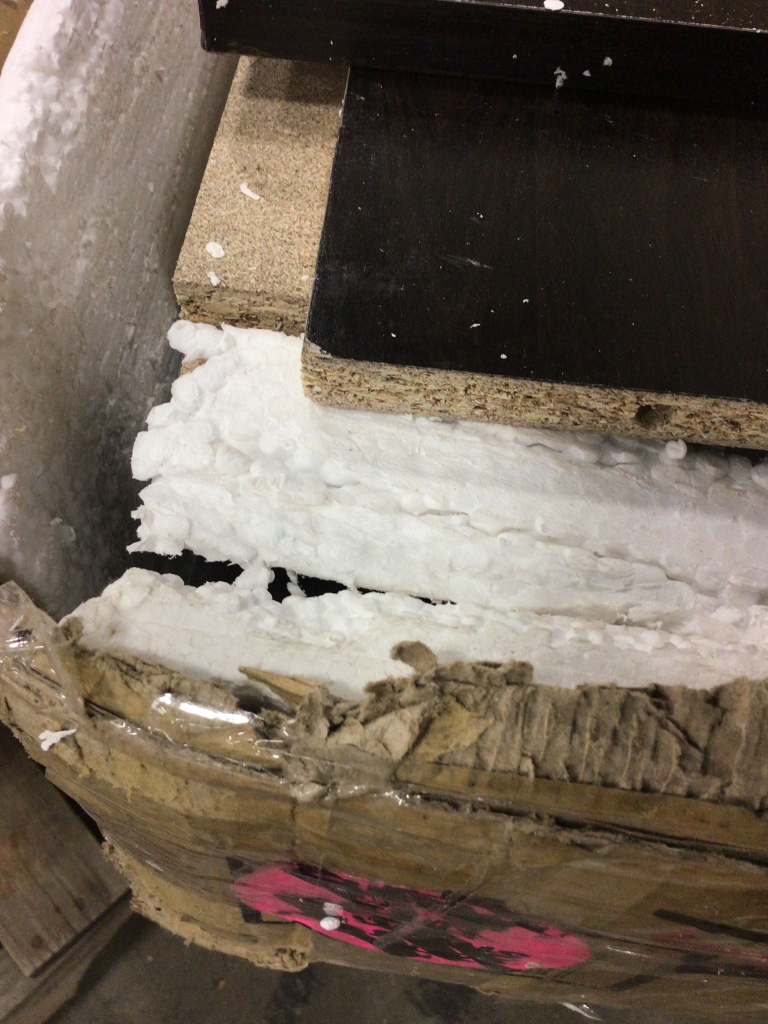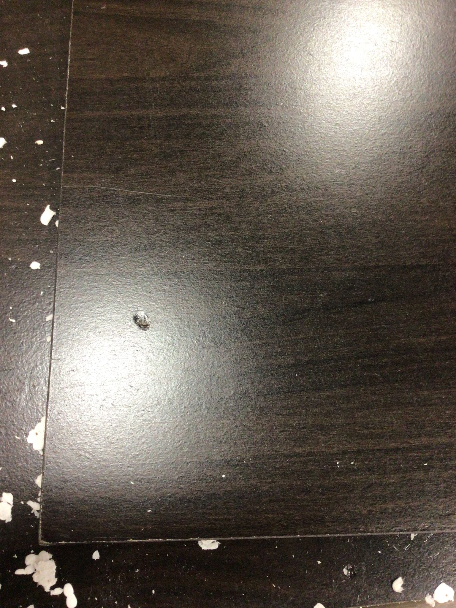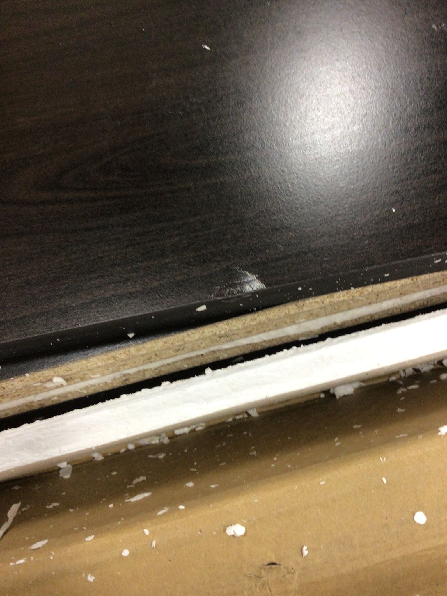 Open box, The color is espresso, Slight dings and chips on boards. Previously opened. See photos
