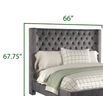 Tufted upholstered wing back headboard in Gray Velvet. Queen size. Headboard ONLY. Bed NOT included.