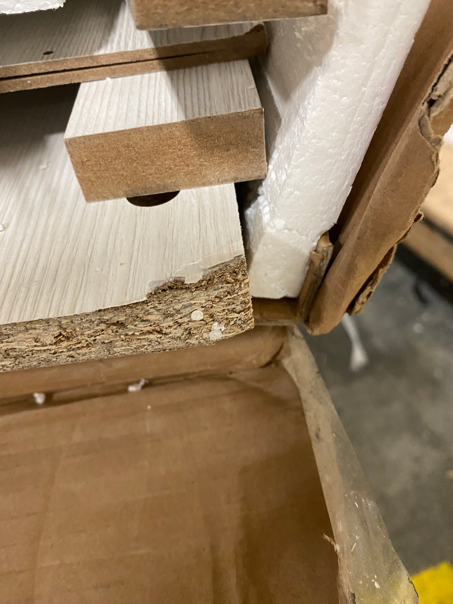 Note: AS IS Condition: Item has dings/chips on side panel/top/back boards. See photos. Instructions NOT included, but available through attached link under "Specifications".