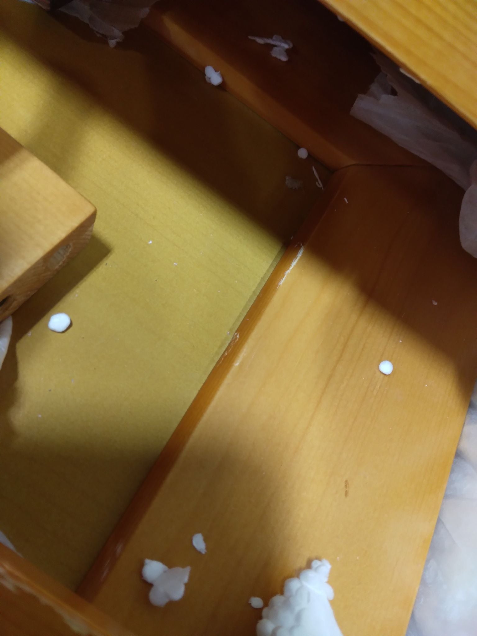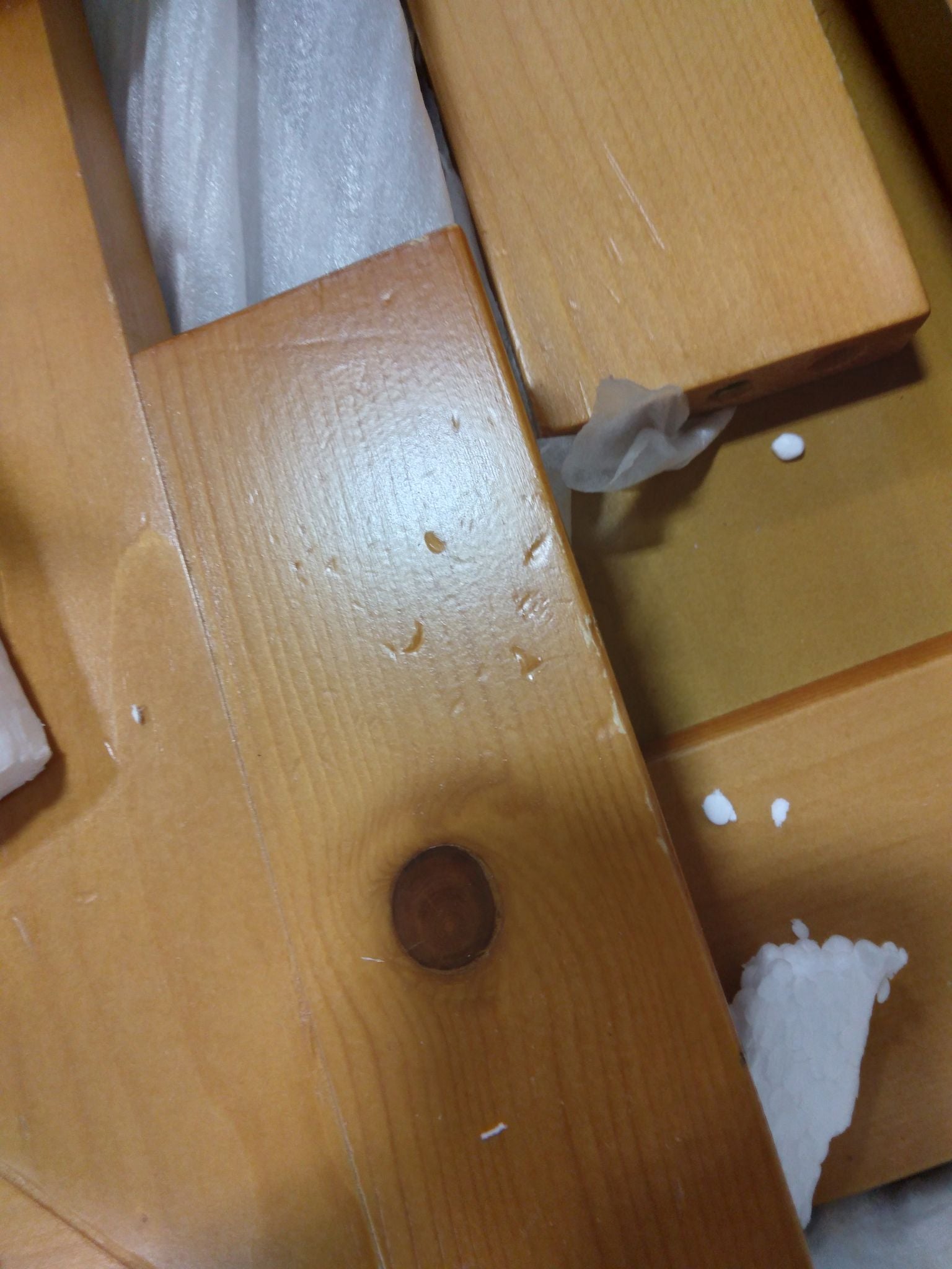Open Box, The color is oak, Size: queen, Previously opened. There is light chipping throughout the wood pieces. See for photos.