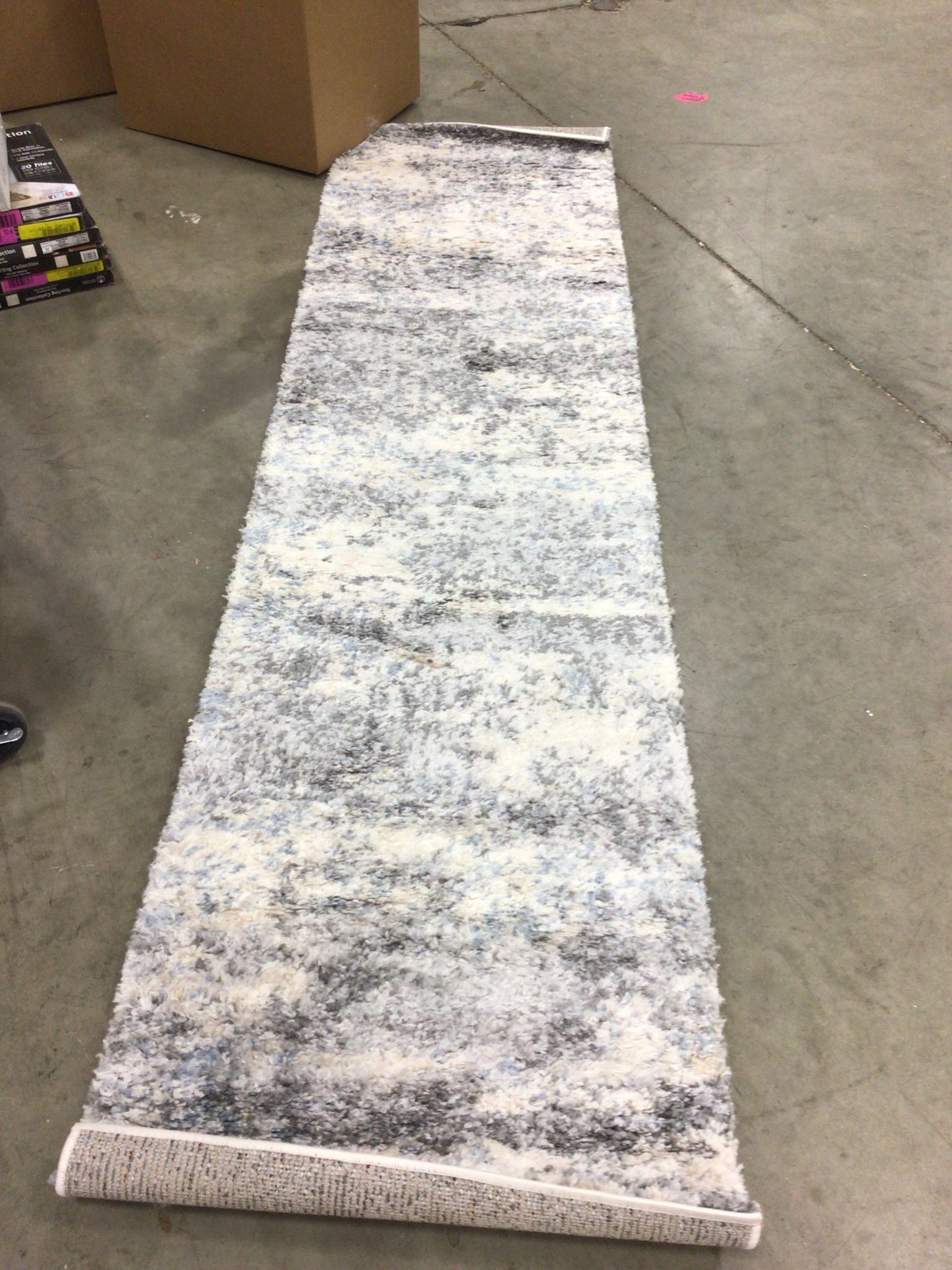 Open box, The color is gray/cream, Size: runner 2' x 8', See photos.