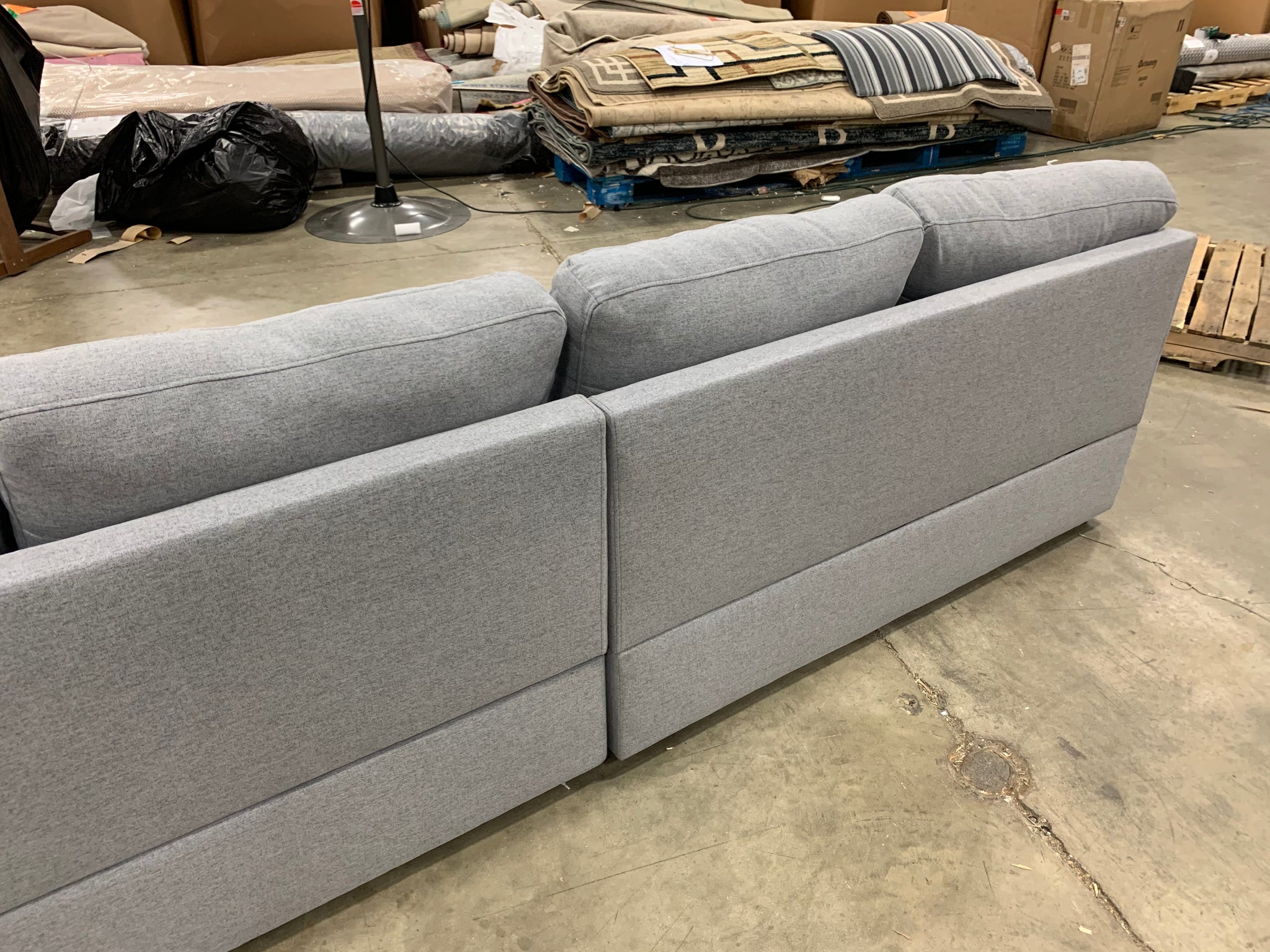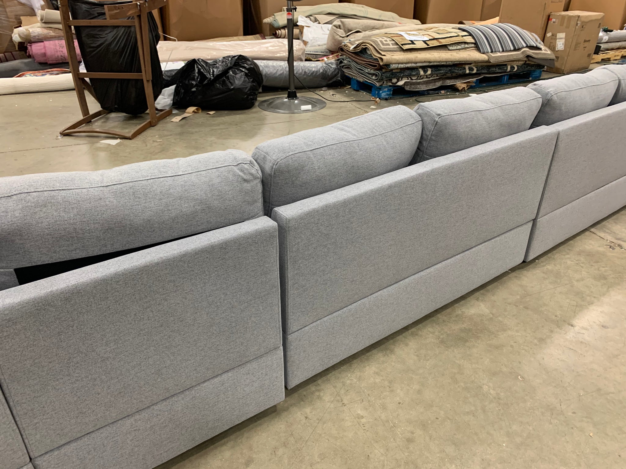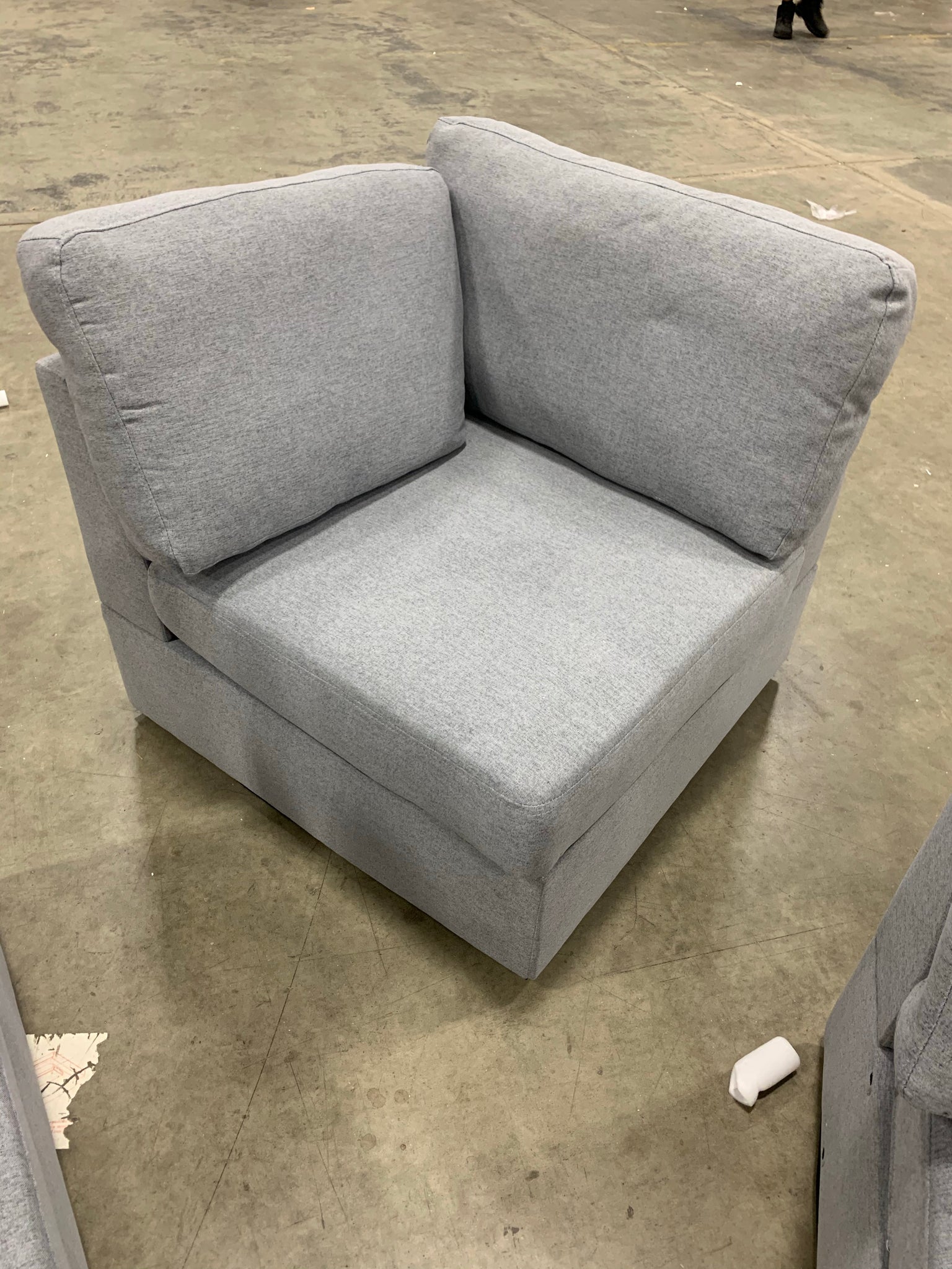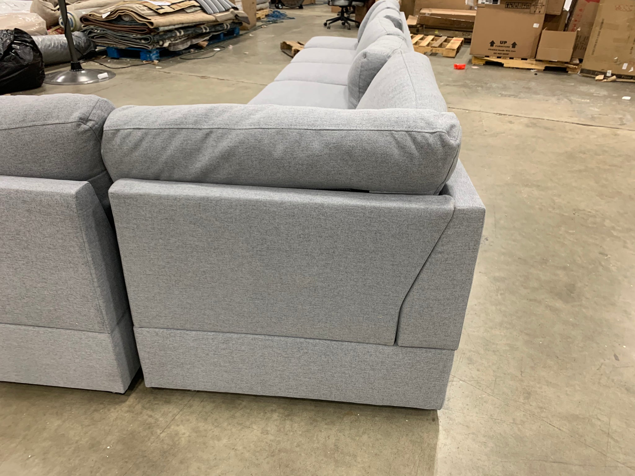 This item is in great out of box condition. The modular sectional is missing the arms but other then that is in great condition. This sectional can be put together in many ways other then how it is pictured.